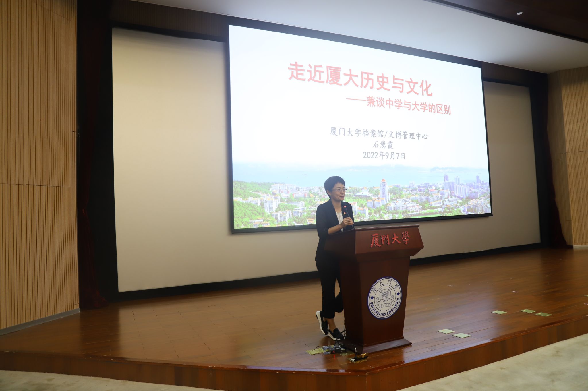 9月7日上午,学校档案馆/文博管理中心石慧霞馆长以《走近厦大历史与文化-兼论中学与大学的区别》为题,用一场精彩的校史专题讲座拉开了新生入校教育的序幕。