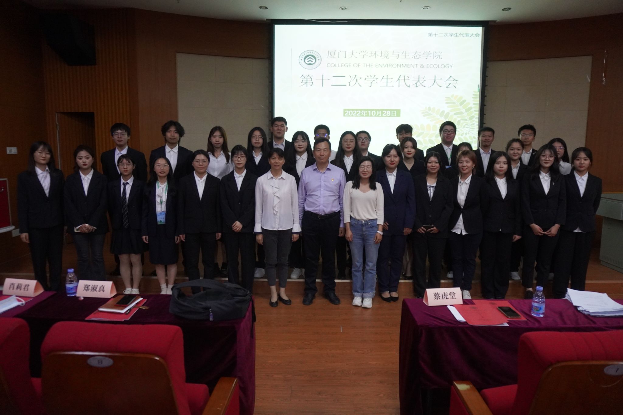 10月28日晚,我院在金泉楼B103召开第十二次学生代表大会、团员代表大会。学院党委副书记蔡虎堂、团委书记郑淑真、辅导员肖莉君,厦门大学学生会主席团成员钟易晟、厦门大学航空航天学院学生会执行主席熊书钰、厦门大学生命科学学院学院学生会执行主席苏锦福以及大会学生代表出席了本次会议。