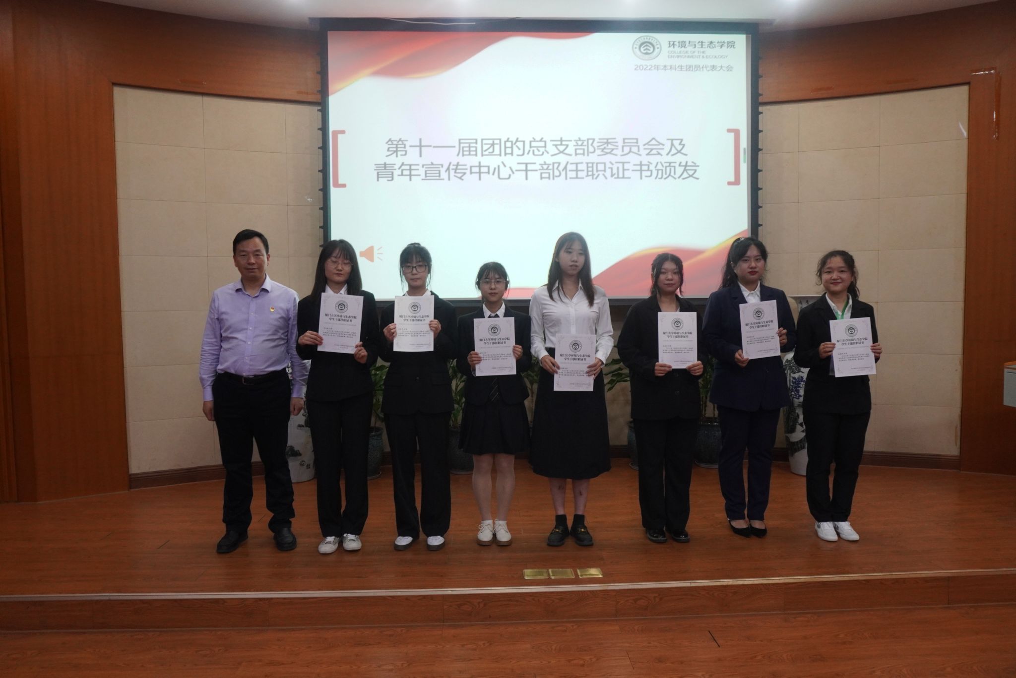 伴随着铿锵的中国共青团团歌,大会圆满结束。第十一届、第十二届学生会团总支成员与老师们合影留念。