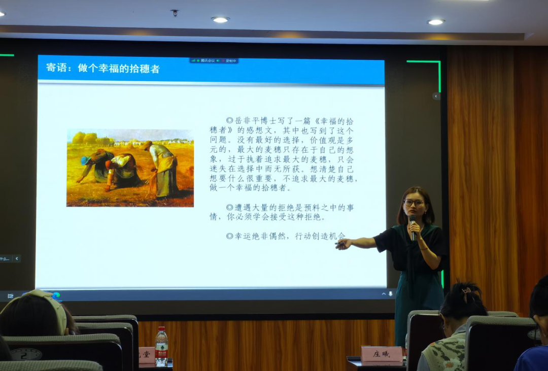 占群丽表示,有志成为选调生的同学要努力提高自身能力,积极参加学校基层就业职前训练营、暑期社会实践等活动,提升自身素质。她分享了选调生相关信息的获取渠道,如厦门大学2023届基层选调QQ群、厦大基层就业公众号、厦门大学学生就业创业指导中心网站等,并勉励大家在选择职业时,应把个人和国家的发展联系起来。