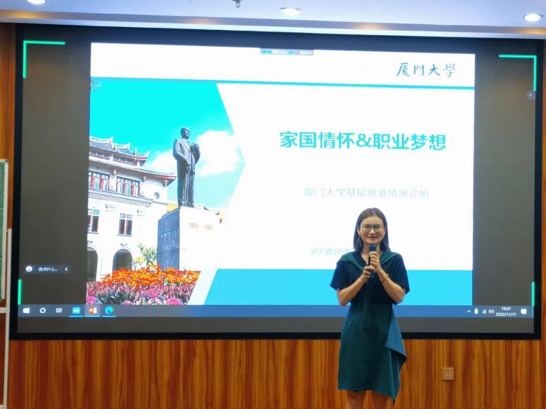 为鼓励大学生积极投身基层建设,引导其将个人发展目标和国家需要相结合,11月11日晚,香山就业赋能站之“家国情怀 职业梦想”选调生及人才引进政策分享会(第三期)在曾宪梓楼101报告厅顺利举办。本次分享会邀请到厦门大学学生就业创业指导中心占群丽担任主讲,以线上线下相结合的形式,共吸引了来自各学院80余名本科生和研究生参加。