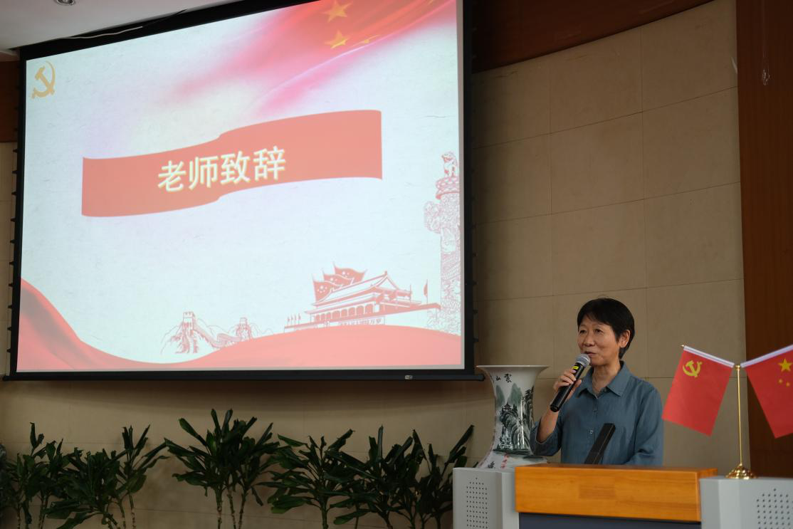 袁东星首先上台致辞。她介绍了关工委的相关职能及近期动员志愿者辅助学生数学和物理课程等活动。袁东星表示,虽然退休教师与学生年龄上存在差距,但并不存在代沟,希望同学们能够积极参与关工委志愿活动,帮助大家一起成长成才。
