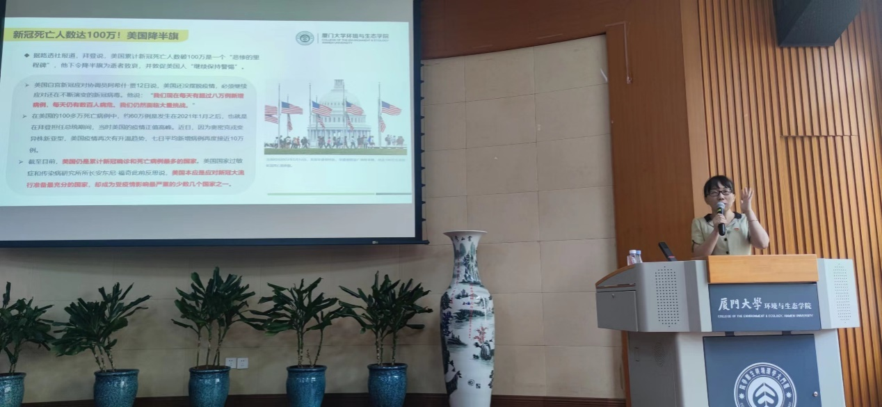 疫情防控,人人有责。学院党委副书记刘莉颖老师为新生系统介绍我校常态化防疫政策,并向大家列举数个典型违规案例和相应处理办法,提醒新生严格遵守疫情防控政策,落实疫情防控责任。