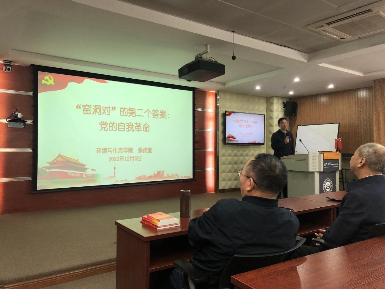 卢豪良对蔡虎堂的精彩授课表示感谢,希望三个支部师生党员以此为契机,进一步学习宣传贯彻好党的二十大精神,深刻认识到党的自我革命是党永葆初心的关键一招。