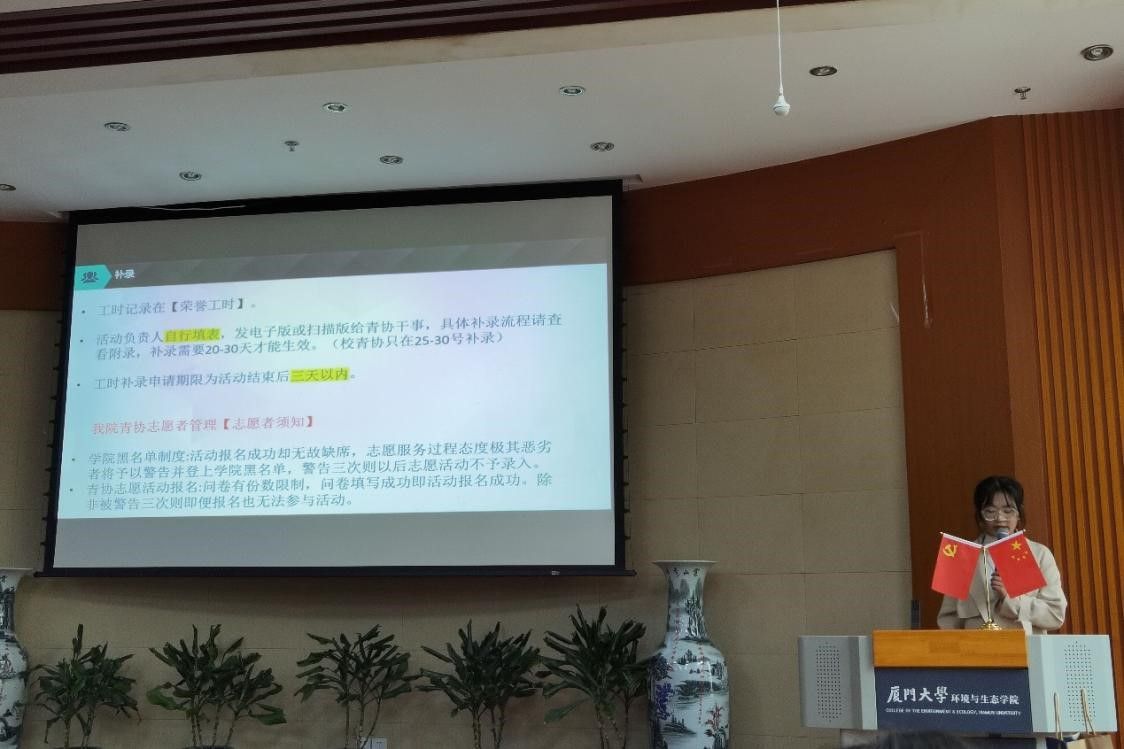 在第二天的学生干部培训中,余下未进行宣讲的部门负责人为在场学生干部继续开展工作技能培训。首先,办公室负责人刘苗和青协负责人刘晓晓介绍了部门工作流程,强调了工作报销及志愿者活动申请的相关注意事项;宣传中心各部门负责人分别介绍了部门分管工作,并进行了海报与视频制作、公众号推文、新闻稿撰写等技术培训。