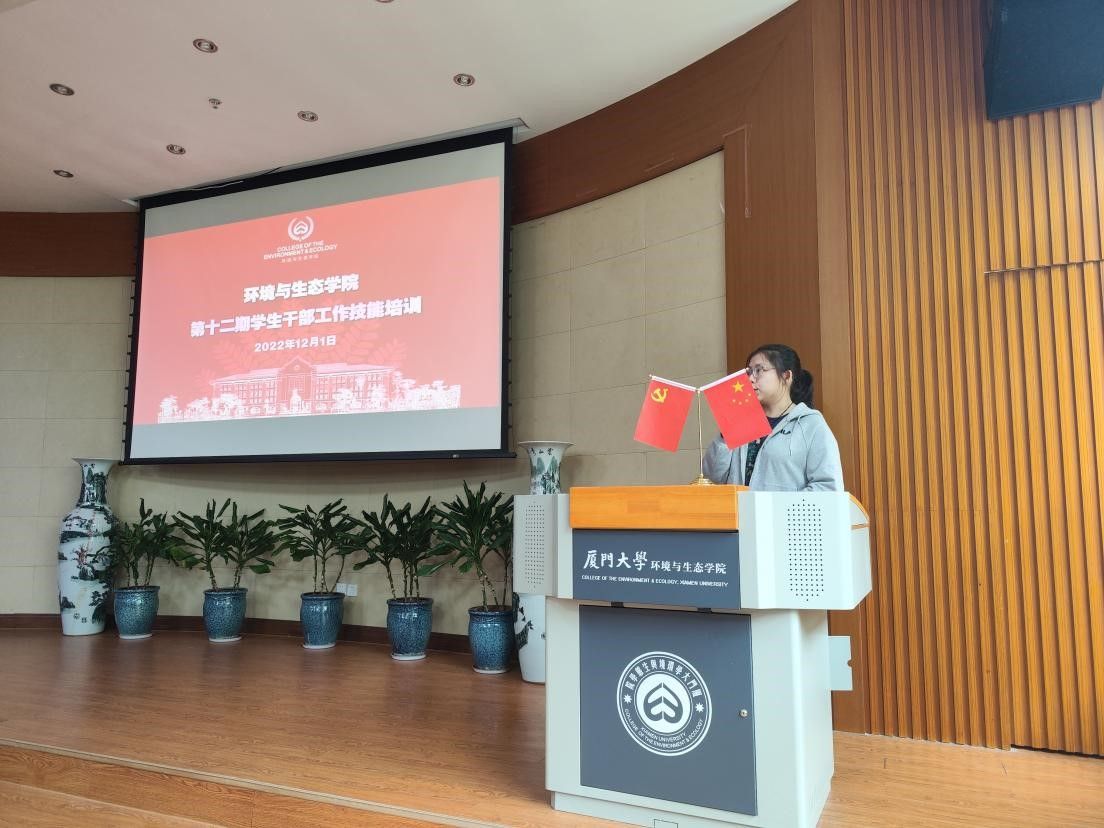 12月1日中午,我院第十二期学生干部培训开班仪式暨学生干部工作技能培训在金泉楼B103举行。学院党委副书记蔡虎堂、辅导员及新当选的学生干部出席会议。会议由学生会执行主席邱毓芳主持。