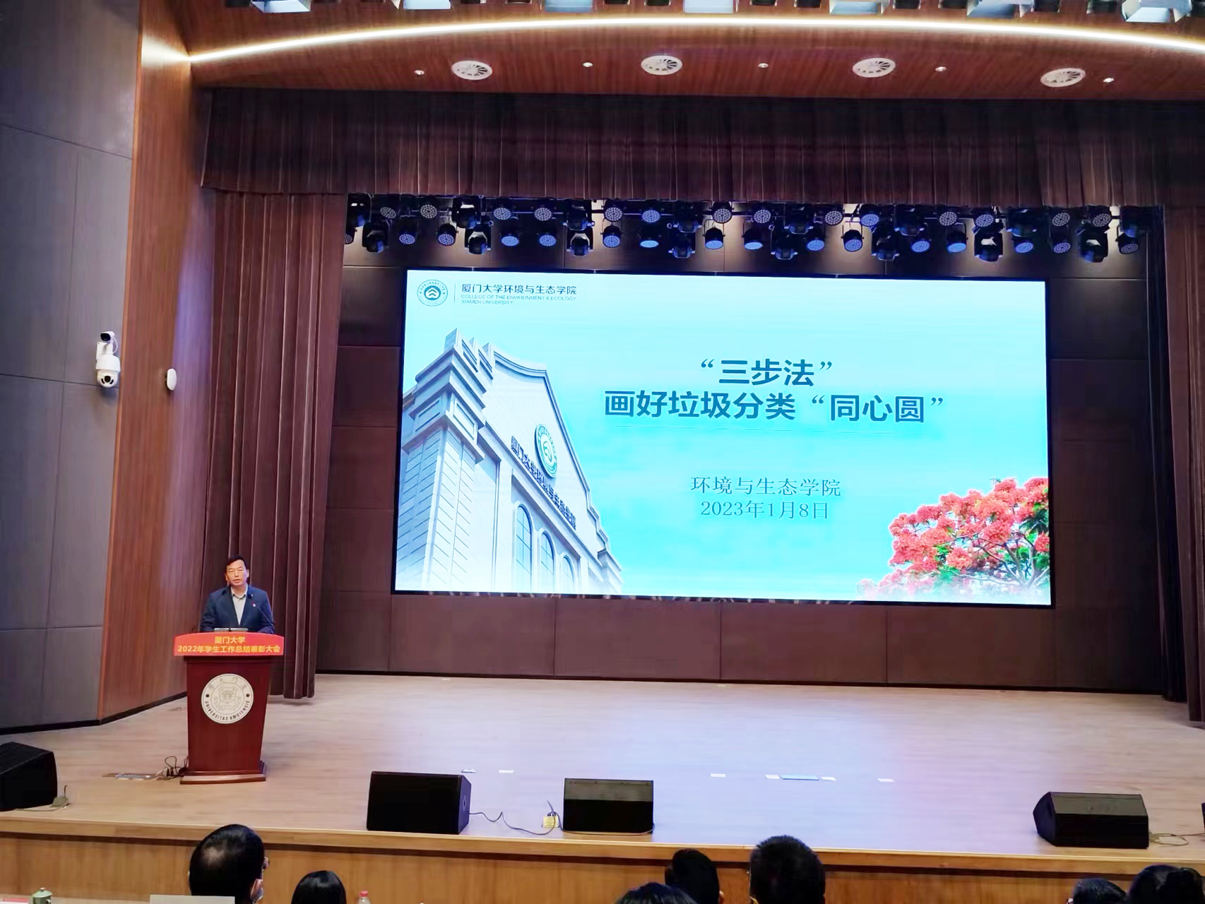 1月8日,厦门大学2022年学生工作总结表彰大会在翔安校区西部片区3号报告厅举行。校党委副书记徐进功、机关部处领导以及全校学工干部参加了会议。本次大会的主题是“学习贯彻党的二十大精神,矢志建设双一流,合力谱写新时代学生工作新篇章”。