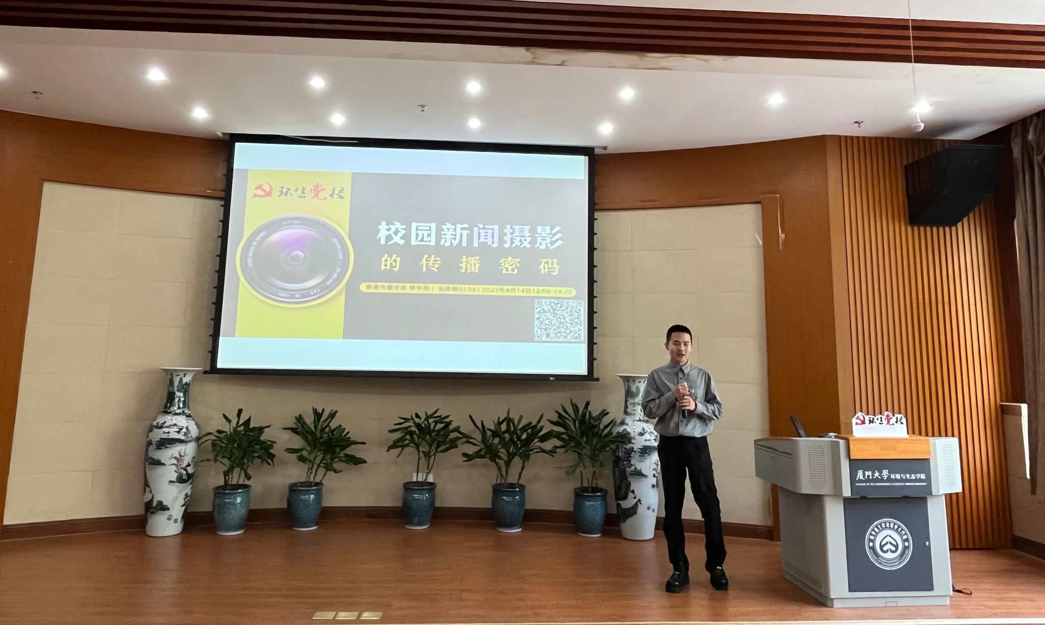4月14日中午,我院在金泉楼B103面向学院师生党员和宣传骨干开展新闻摄影专题培训。本次培训以“校园新闻摄影的传播密码”为主题,邀请厦门大学新闻传播学院2021级硕士生林宇阳担任主讲人。培训由院党委副书记刘莉颖主持。