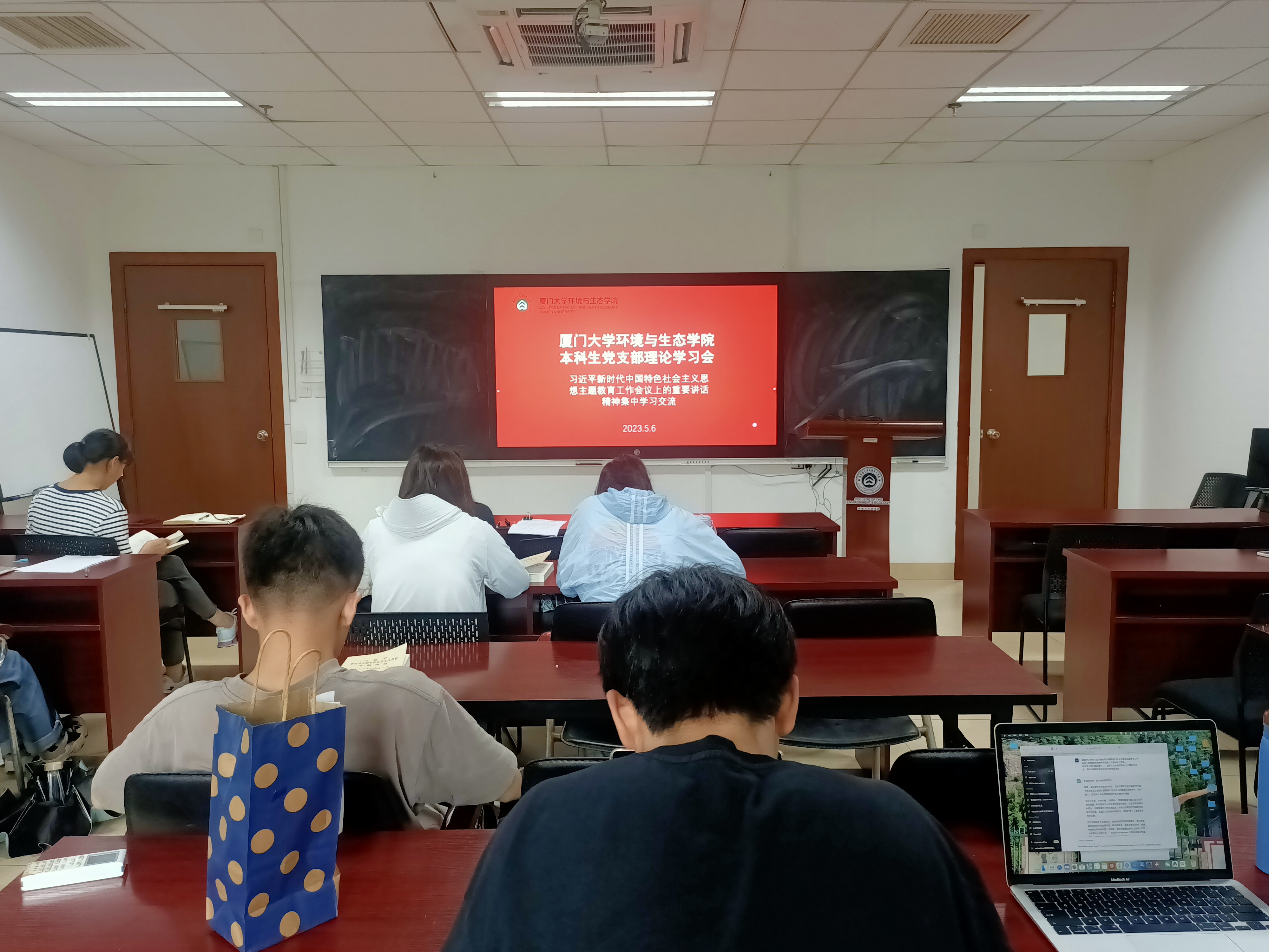 5月6日中午,厦门大学环境与生态学院本科生党支部在金泉楼A201举行了理论学习会,围绕学习贯彻习近平新时代中国特色社会主义思想主题教育工作会议上的重要讲话精神开展了第一次集中学习交流。本次活动由党支部副书记肖莉君主持。