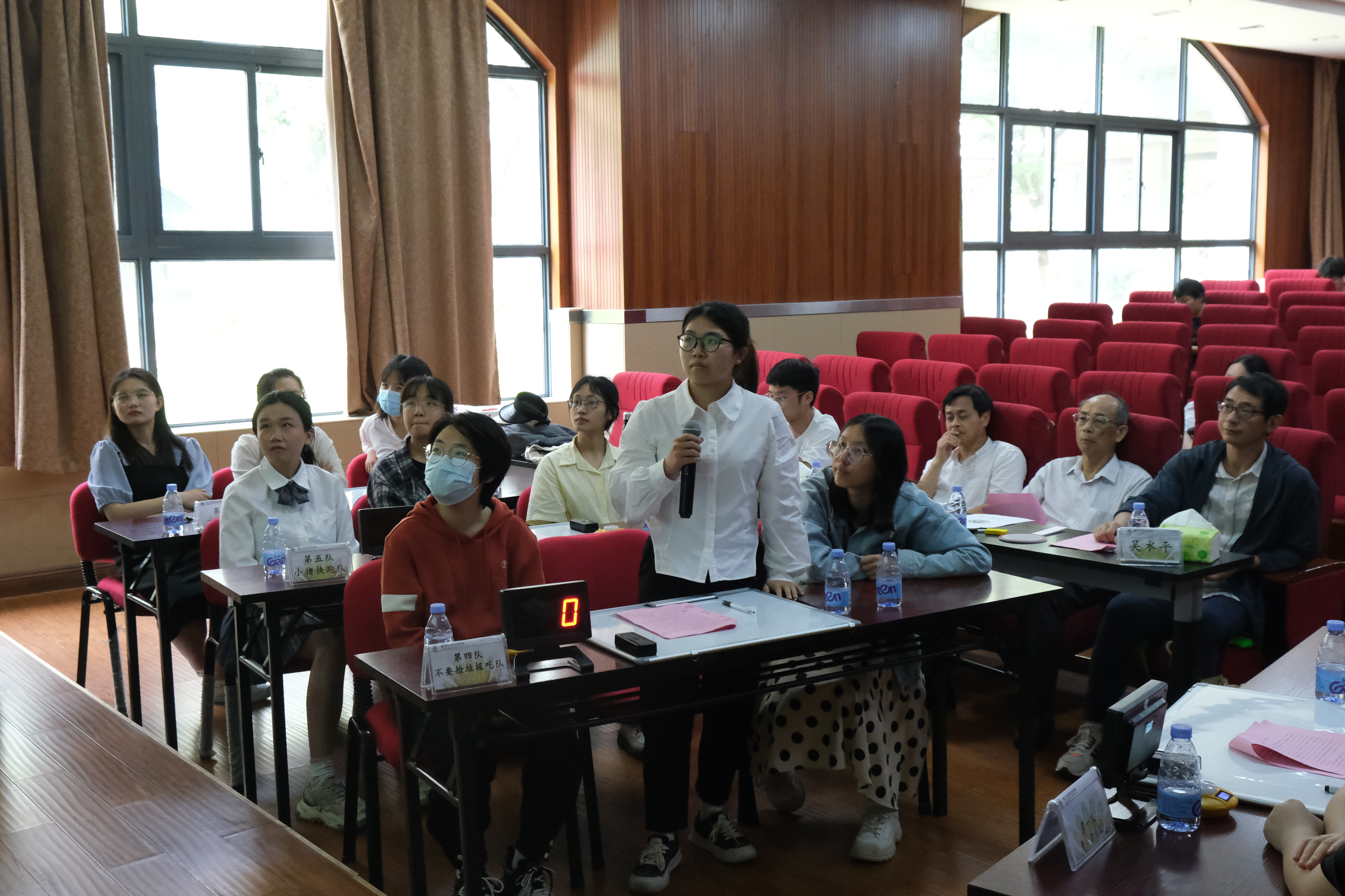 本次比赛是在初赛基础上,对来自全校的235支队伍共计705人的选拔,最终非专业组6支队伍共计18人进入决赛。决赛当天,“不要捡垃圾吃队” “开始浪了对不队”“争取拿奖队”“起名废队”“小猪快跑队”“一路向北队”等6支队伍齐聚金泉楼B103报告厅展开激烈角逐。决赛共分6轮,题型涉及判断、选择、填空、论述,枚举,内容涵盖环境相关的生活、法律、专业知识等,对参赛队员们的环保知识素养进行全方位的考察。来自各个学院的选手纷纷展现实力,凭借扎实的环保知识储备与沉着稳定的发挥将比分收入囊中。