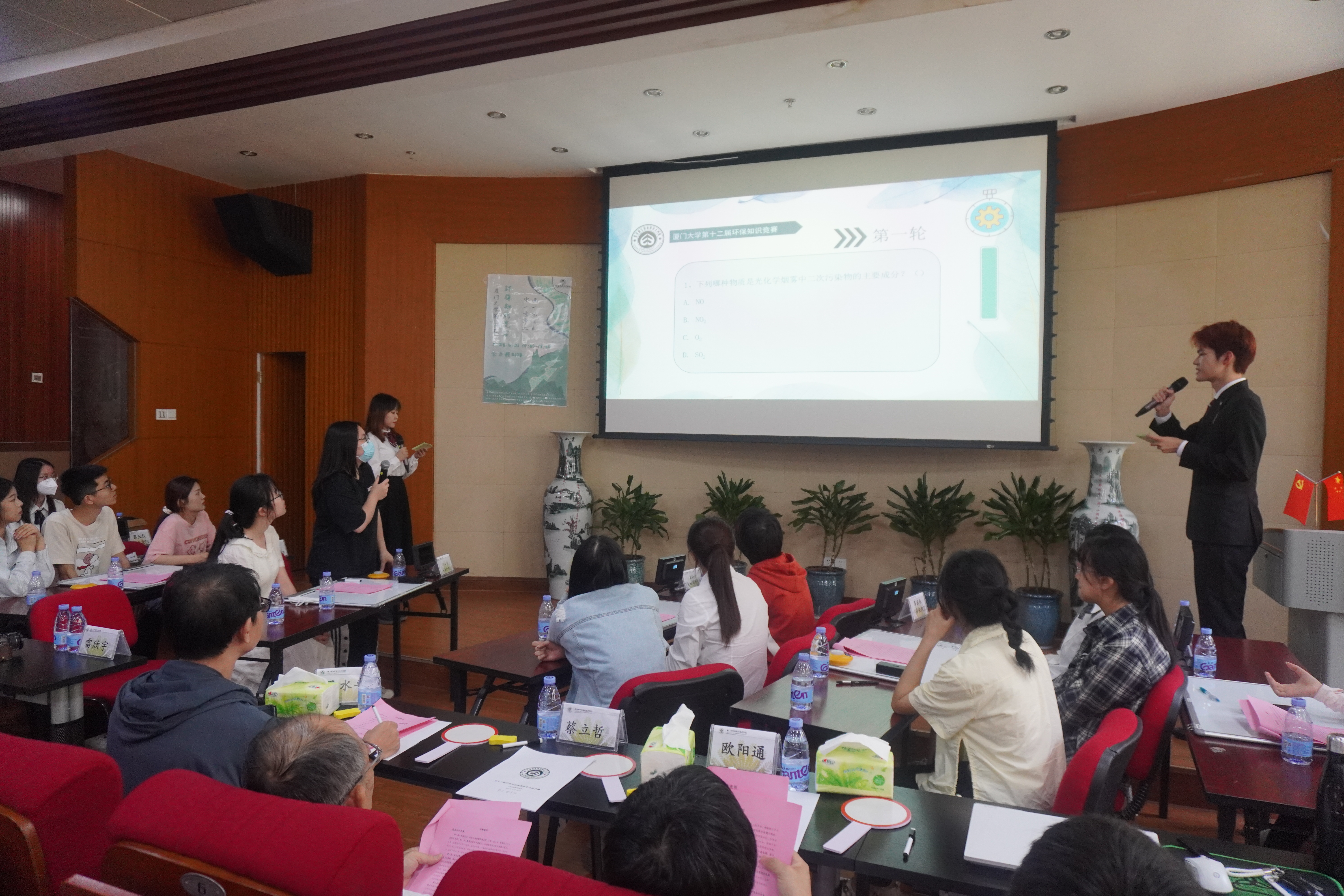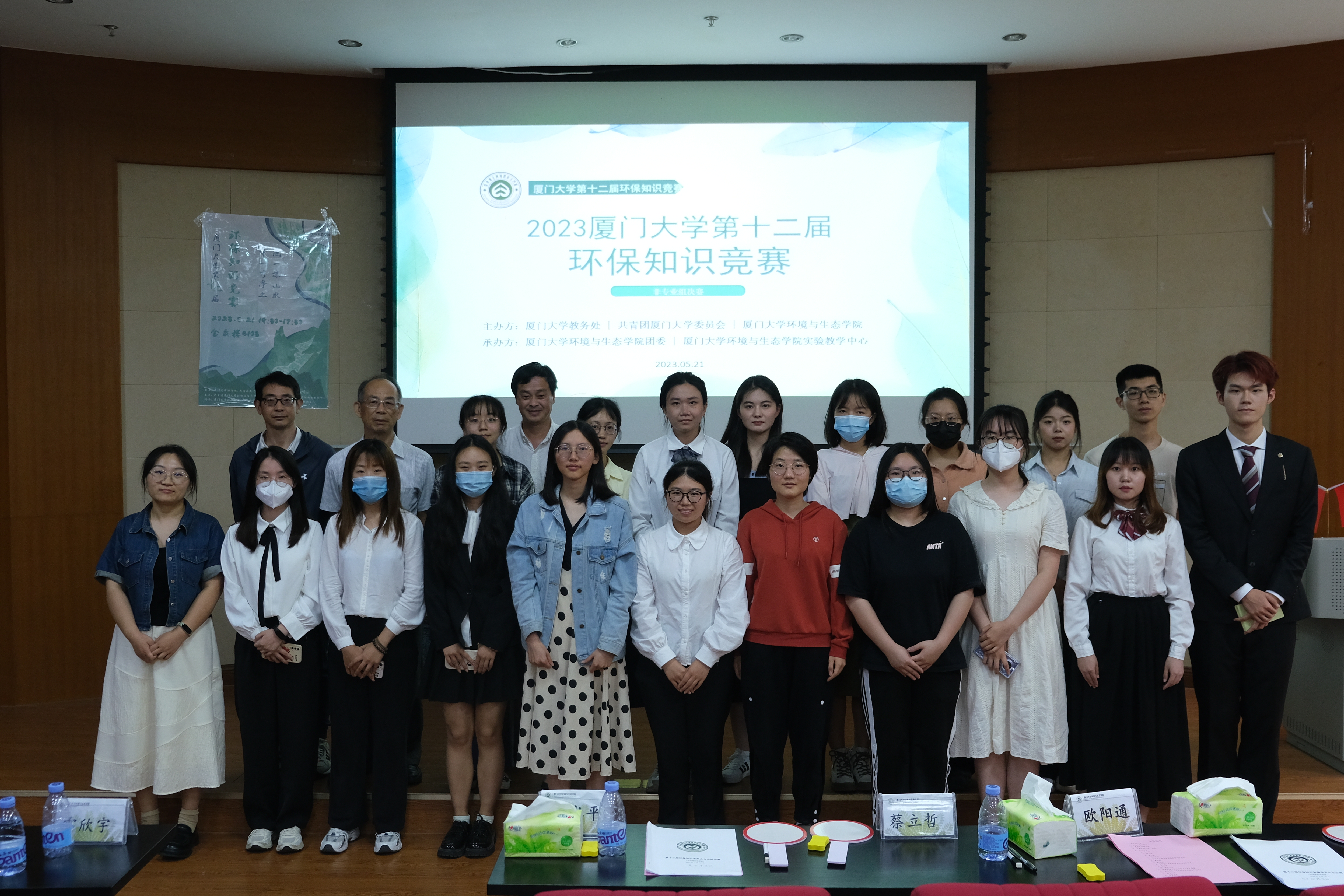 5月21日, 由厦门大学教务处、共青团厦门大学委员会、环境与生态学院共同主办的厦门大学第十二届环保知识竞赛决赛在金泉楼B103举行,我院教授蔡立哲、欧阳通和吴水平受邀担任比赛评委。
