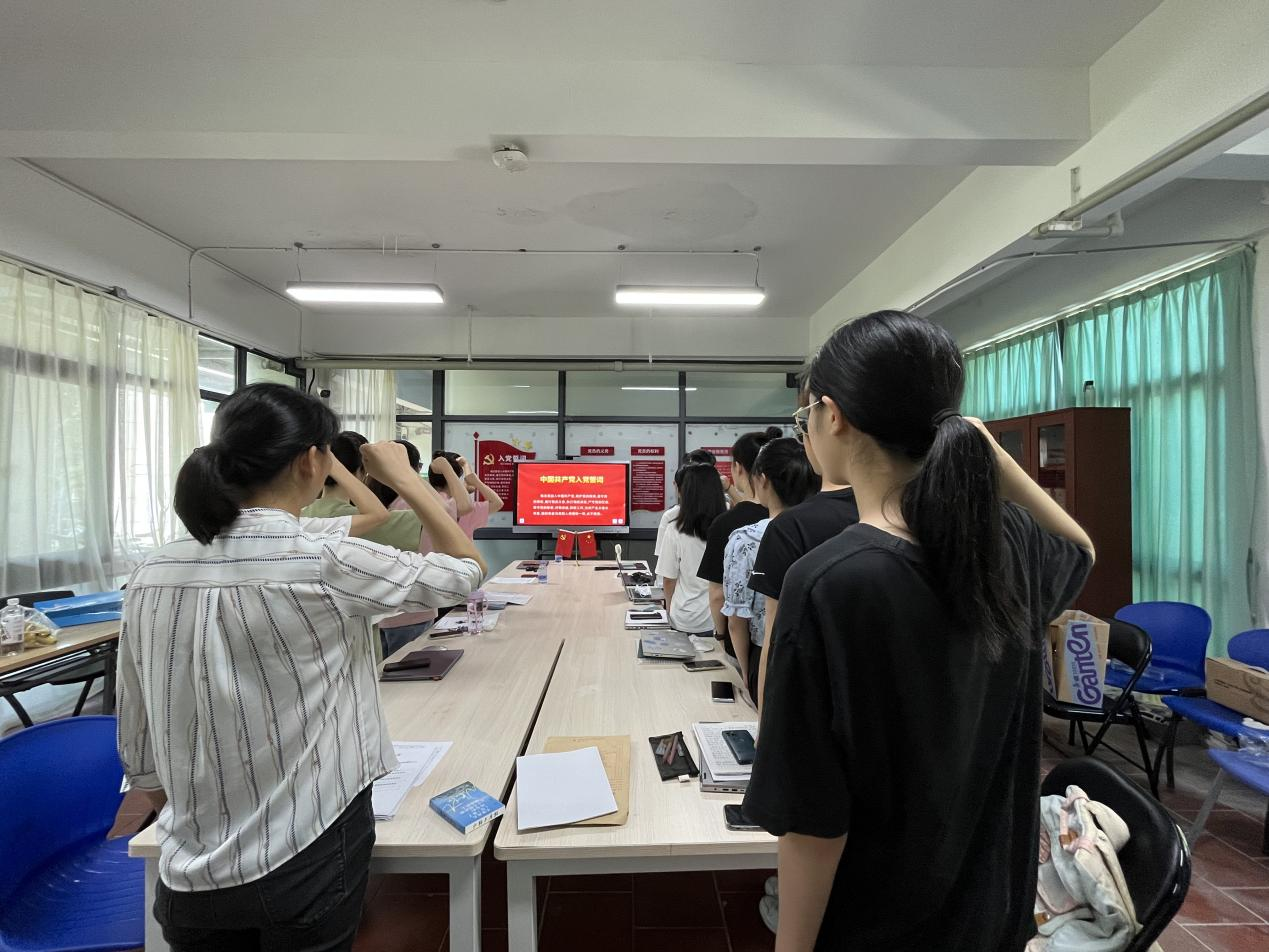 最后,进行毕业生党员欢送仪式。蔡虎堂带领全体党员庄严地举起右手,重温了入党誓词。之后支部向毕业生党员赠送贺卡,以此表达对各位毕业生党员的美好祝愿。