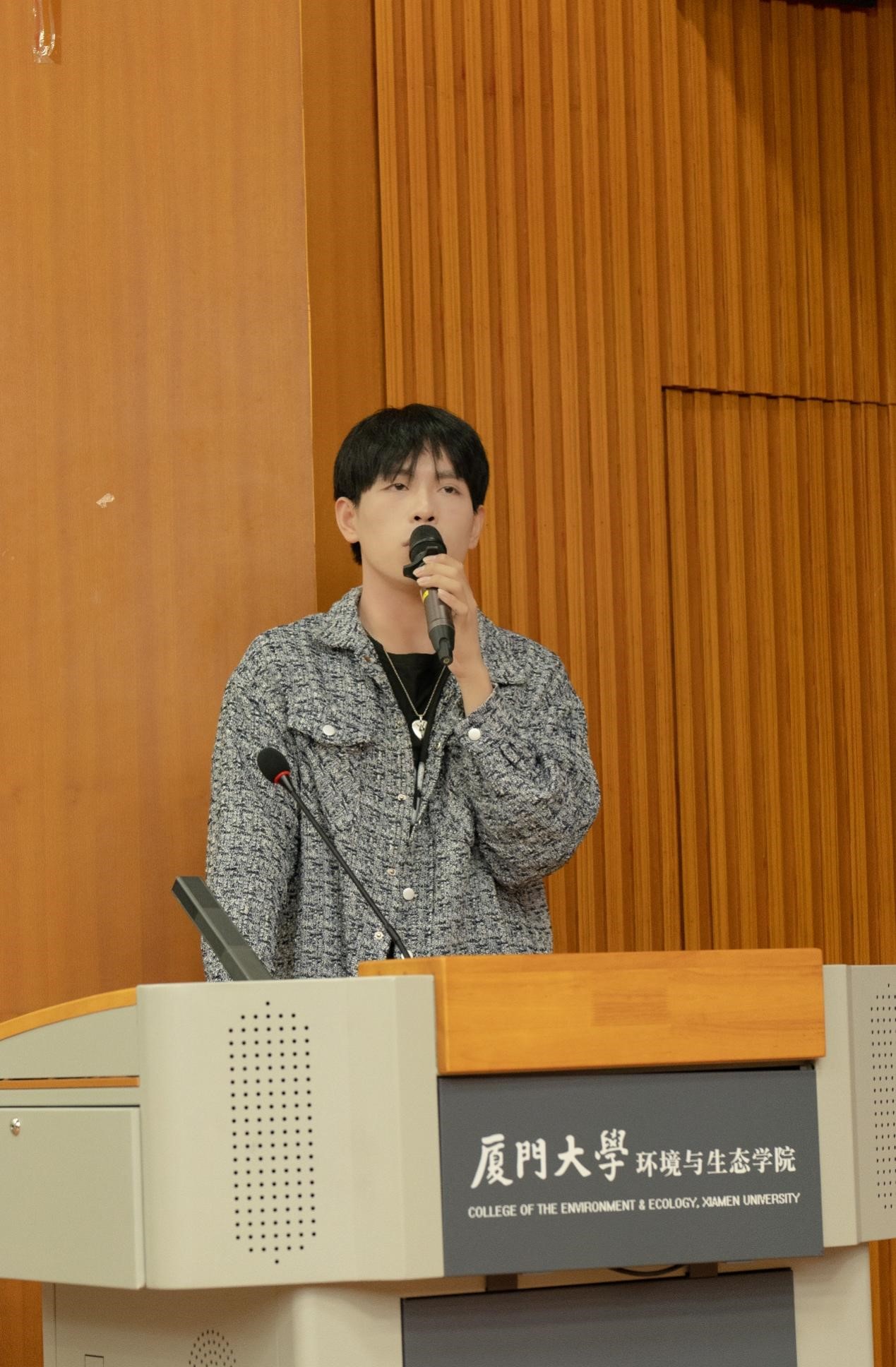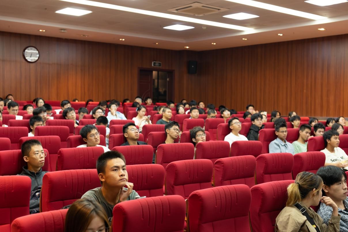 其次上台的是推免至清华大学的张浩坤。他分享了自己以第一作者发表论文的心路历程,介绍了他如何选题、查阅资料、撰写论文、修改投稿等步骤,并给出了一些实用的建议。针对同学们课业上的困惑,他也给出了自己的建议。他建议新生们在公共基础课的学习中,不仅要上课认真听讲,更要关注课后的例题,课后例题是宝贵的复习材料。