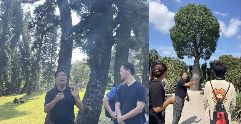 走进园区,大家首先来到南洋杉草坪,在邓小平同志手植大叶樟树处听园林植物园工作人员讲解并合影留念。