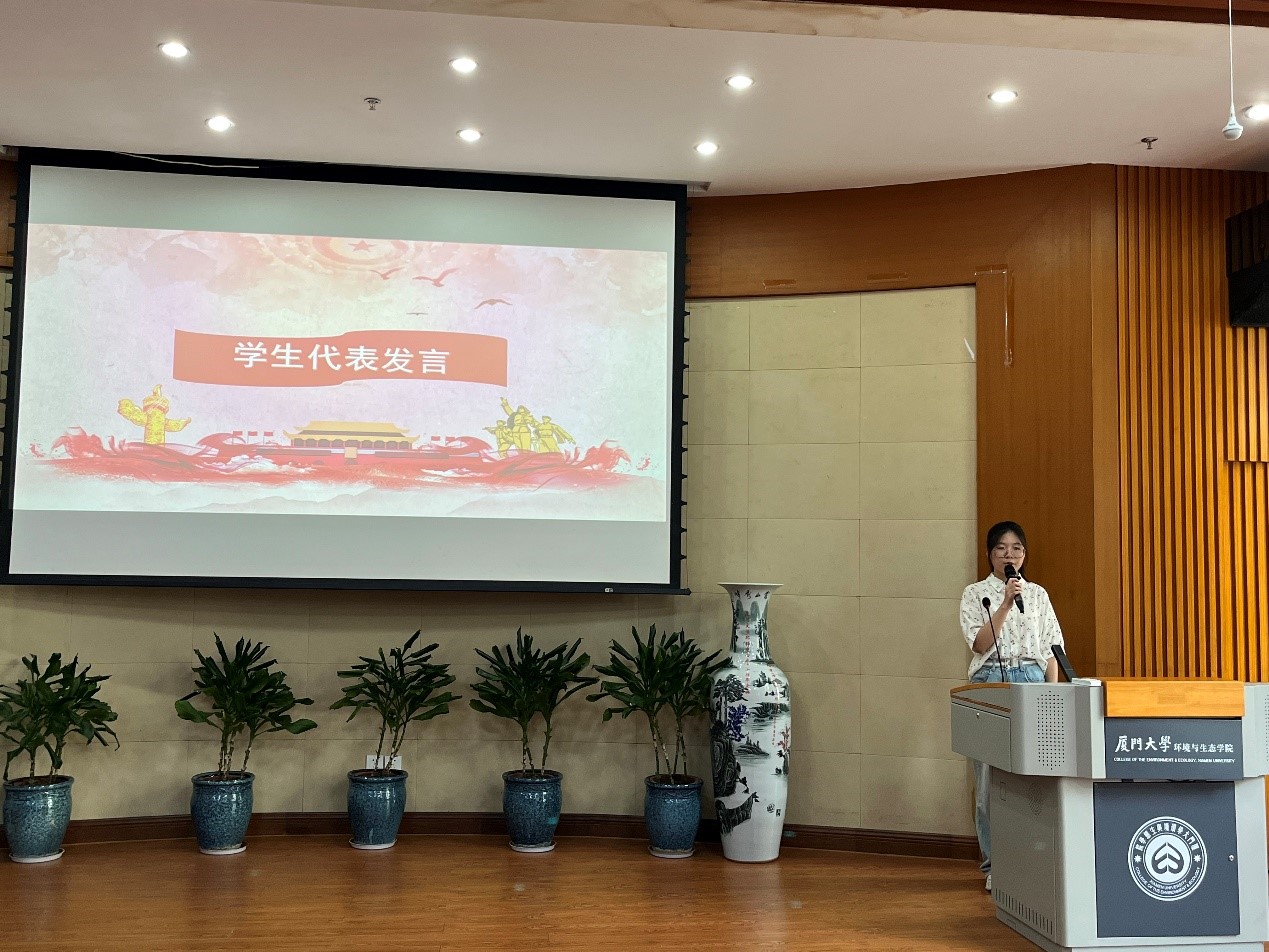 于雨彤作为学生代表发言,她表达了对中国共青团第十九届代表大会的热烈祝贺,中国共青团在党的领导下,团结引领广大青年,凝聚起青年的力量和智慧,新时代的青年应该树立高尚的思想品德,培育责任担当,为国家的繁荣昌盛贡献自己的一份力量。