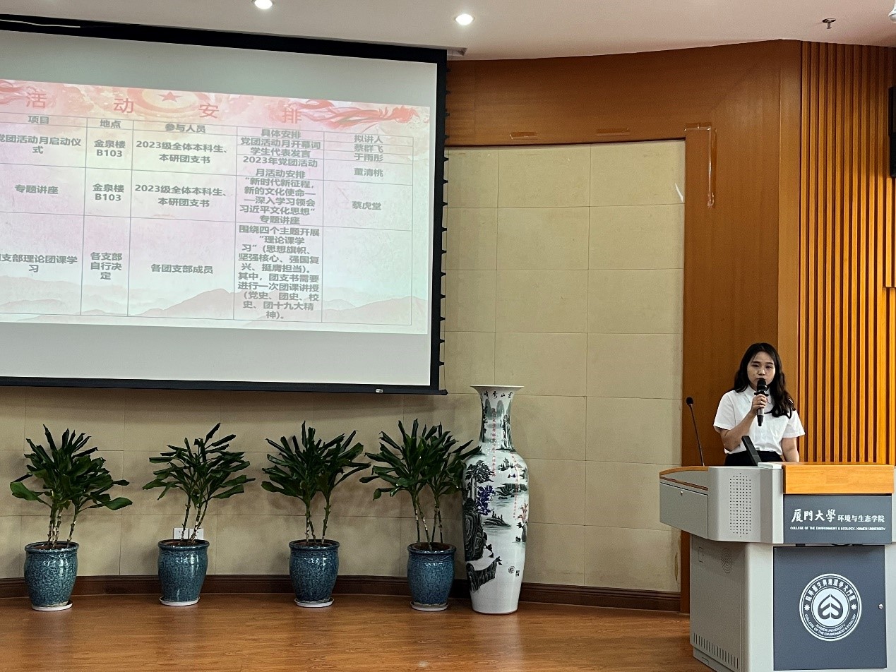 11月10日中午,我院团校2023年“党团活动月”活动启动仪式在金泉楼B103顺利举行。本次活动的主题为“青春心向党,奋进新征程”。校团委副书记晏振宇、院党委副书记蔡虎堂,院团委副书记蔡群飞、辅导员肖莉君以及本研团支书、学生会干部和2023级全体新生参与了此次活动。活动由2021级本科生钟欣洋主持。