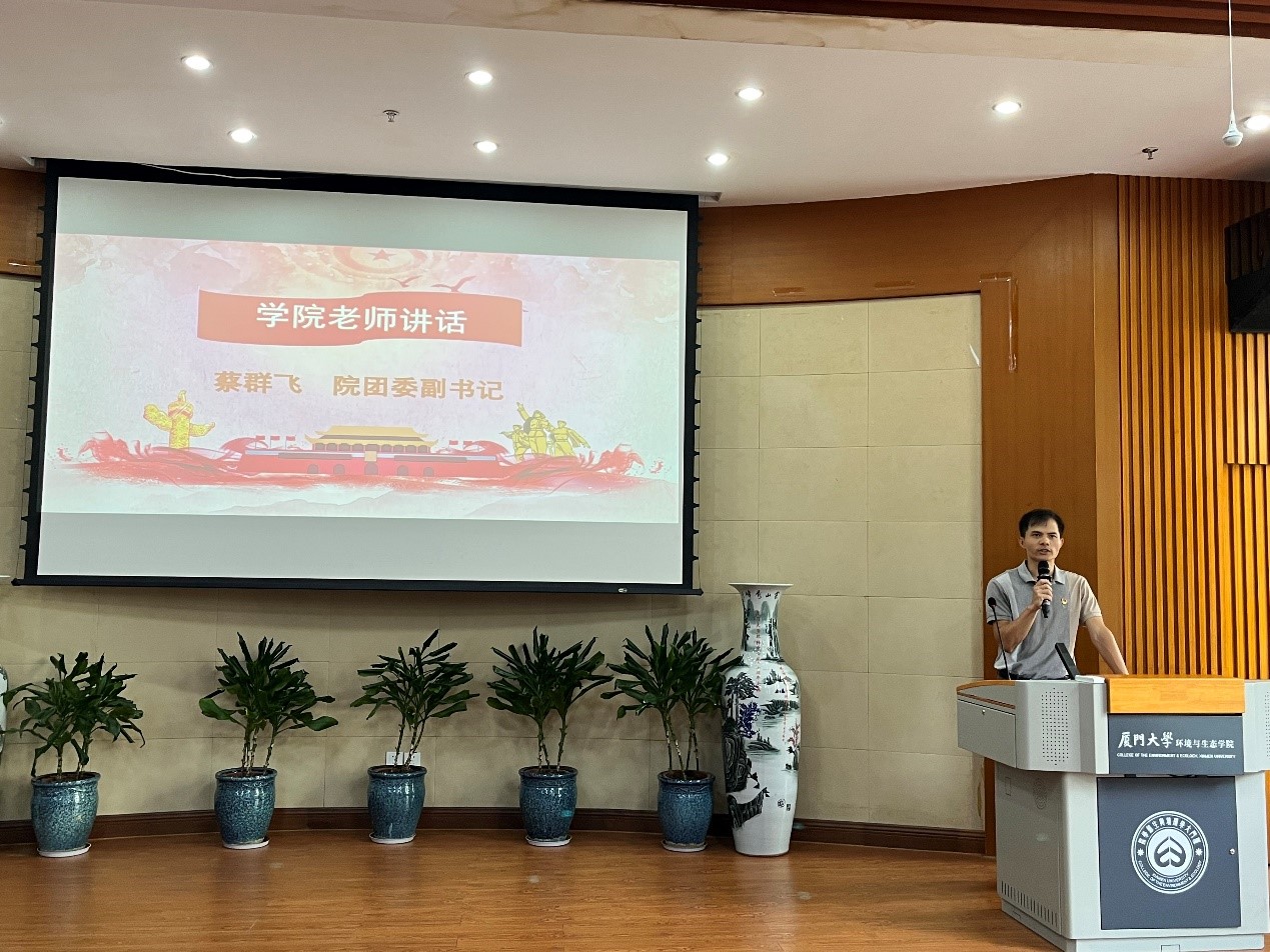 蔡群飞向同学们解读了党的二十大精神的重要意义,并阐明了党团活动月的目的和意义。他鼓励同学们积极投身党团活动,寄语同学们要在学习中找到自己的兴趣和方向,要有明确的目标和计划,并将小我融入大我,要在实践中坚持自己的理想和信念。