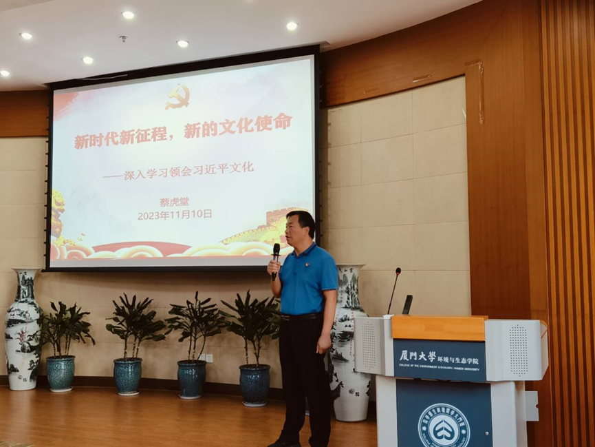 悠扬的校歌合唱后,蔡虎堂为大家作“新时代新征程,新的文化使命——深入学习领会习近平文化”的专题讲座。