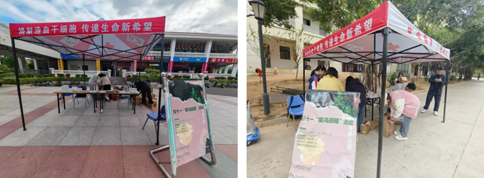 绿动校园,环保至上。为响应国家生态文明建设的号召,更好地向全校师生传达绿色环保的生活理念,11月12日,由厦门大学环保协会主办,厦门大学环境与生态学院研究生会协办的双十一“菜鸟回箱”活动在翔安校区竞丰食堂、丰庭食堂前广场和映雪园区顺利开展。