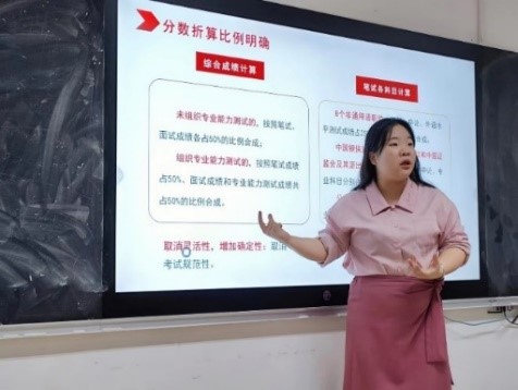 为帮助同学们更好地备战公考,我院就业创业指导中心于2023年11月15日晚上在金泉楼A201教室举办了公务员备考指导讲座,特邀中公教育福建研究院行测部部长吴思洁老师担任主讲嘉宾,为同学们进行考公的政策解读、正确选岗和备考技巧等的指导。讲座受到同学们的广泛关注和积极参与。