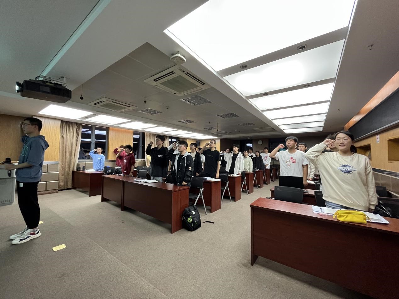 首先,进行学风宣誓活动,由学习委员孙恒然领誓,同学们举起右拳,在一声声坚定的宣誓声中决心做优良学风的提倡者,践行者,传播者。