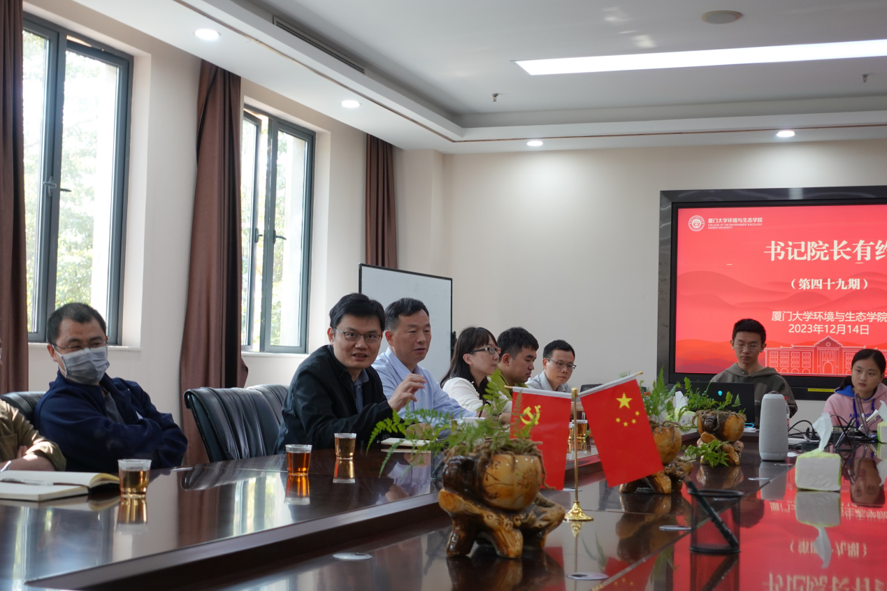 12月14日中午,我院“书记院长有约”活动在金泉楼A226会议室顺利举办。学院党委书记王晟,党委副书记蔡虎堂、刘莉颖,副院长马剑、工会主席陈荣、生态学系副主任卢豪良、环境与生态工程系主任张彦隆、班主任洪华龙、实验教学中心副主任闫俊美、本研辅导员、教学秘书以及新生代表出席了座谈会。活动由蔡虎堂主持。
