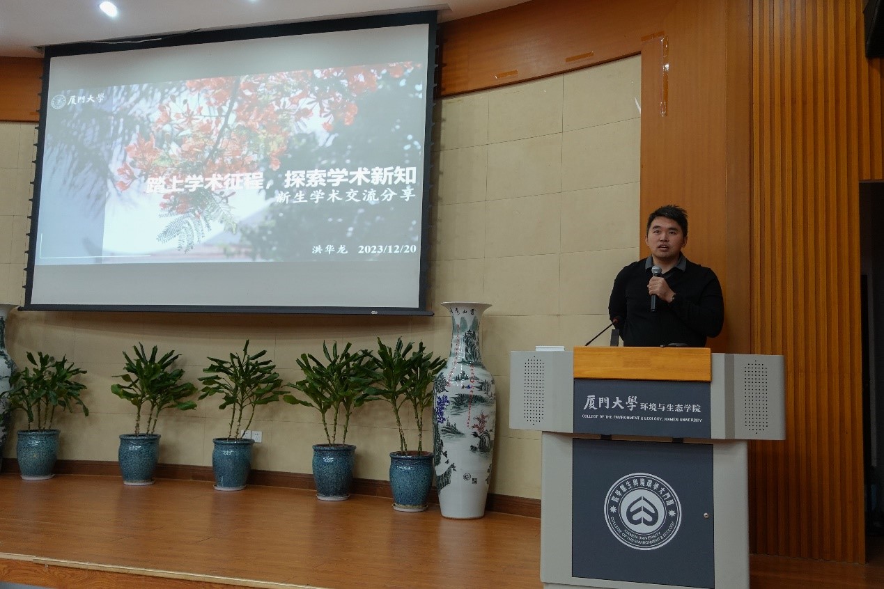 洪华龙围绕论文写作展开分享。他强调了大学与高中学习的差别,晓之以理、动之以情地激励新生们学会自主学习,要有自信心,主动争取发展机会,不断提升自己。同时洪华龙还指出,论文写作是一种分析性的写作,不同于高中作文的叙述性写作,并举例分析了高考满分作文与科研论文的区别,让新生们明白科研论文与高中作文的写作方式和评价标准的不同。他建议新生们要多读一些优秀的论文范例,学习其中的写作技巧和逻辑结构,同时也要多广泛阅读文献,形成自己的观点和论据。