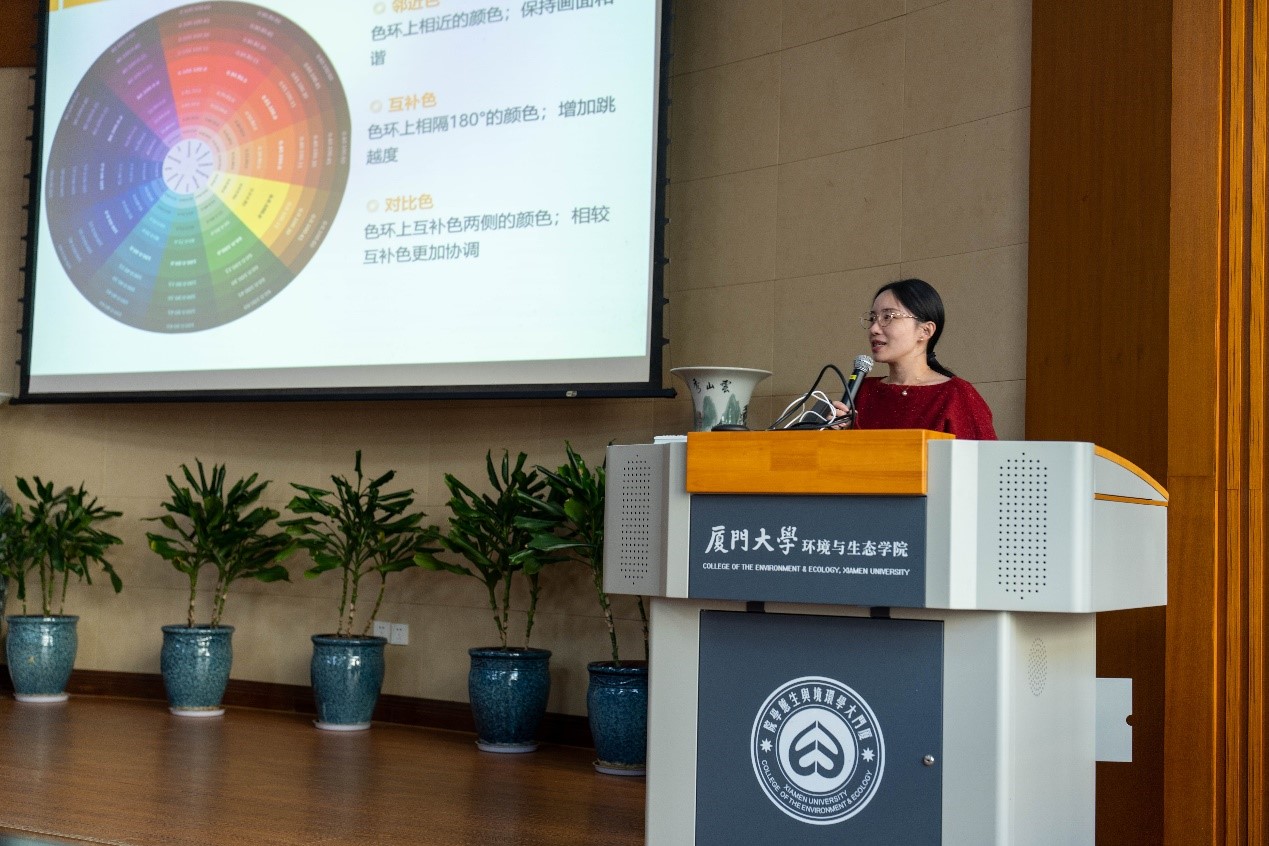 会议伊始,柯晓琳以“宣传材料设计与排版技巧”为题开篇,向学生干部们介绍了设计“七问分析法”,并用自己的海报设计案例,逐步讲解了设计准备、构图排版、照片摄影等关键环节。她重点讲解了“构图排版”的技巧和要点。她强调,宣传设计的精彩之处在于排版的巧妙,排版时要遵循对比、对齐、亲密、重复的四大原则,力求达到整体同侧对齐、字体行距多样化、视觉要素呼应的视觉效果。她还用实例展示了点线面在画面中的运用和构图的方法,形象地对比了不同构图的效果差异。