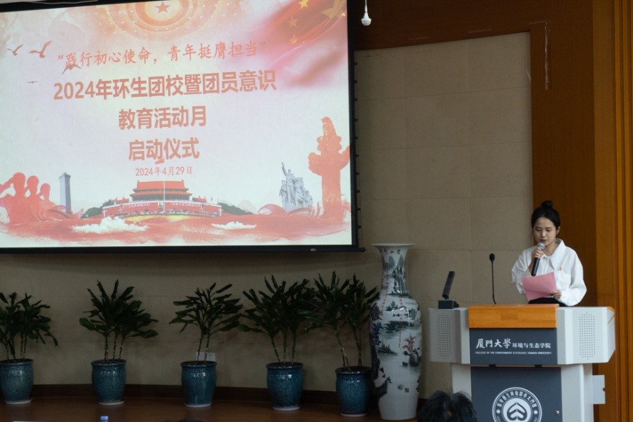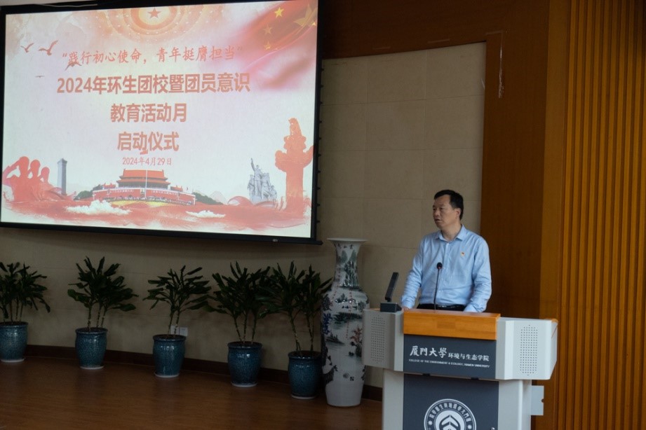 为落实落细学风建设要求,涵养一流育人生态,促进学生全面发展,4月29日中午,我院于金泉楼B103举行“践行初心使命,青年挺膺担当”2024年环生团校暨团员意识教育活动月启动仪式。院党委副书记蔡虎堂、团委书记郑淑真、团委副书记黄怡平以及本研团支书和2023级全体本科生到场参加活动。本次活动由研究生团总支书记董清桃主持。