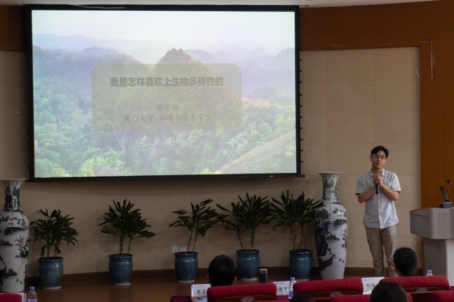 陈宇新以自己大学经历现身说法,生动地向在座同学们讲述了他对生物多样性的热爱之旅。他不仅分享了选择生物学专业的动机,还讲述了在专业学习过程中所体验到的乐趣和收获,深刻阐释了生态学的重要性、综合性和魅力。
