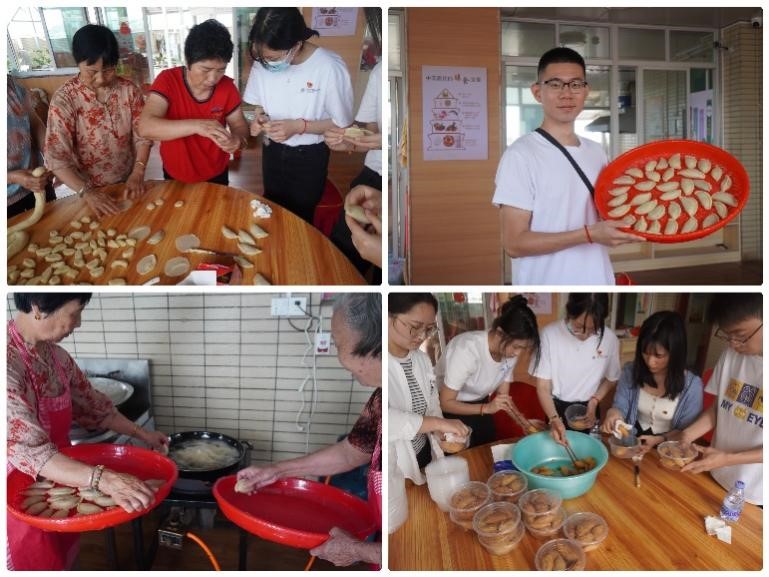 第一站,同学们与百崎回族乡白奇村的老人们齐聚一堂,体验制作当地特色美食月牙酥。月牙酥,以其形似弯月而得名,是百崎回族乡的美食文化符号。在经验丰富的回族老人指导下,实践团成员们认真学习了月牙酥的制作过程,从和面、包馅到烘烤,每一步都凝聚着匠心,及对传统工艺的尊重与传承。