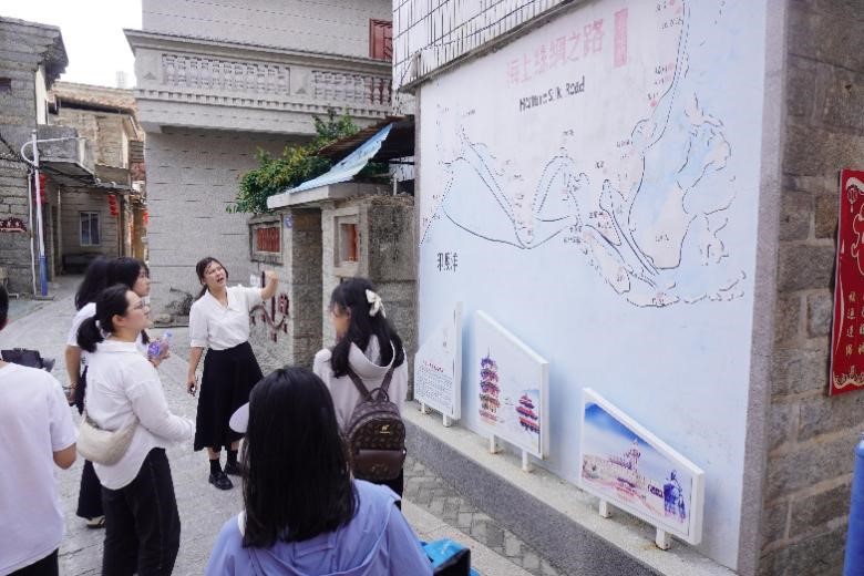 第三站,同学们前往白奇古街、接官亭和百崎回族史馆,实地探索了民族乡村红色故事与特色民俗。白奇古街的石板路上,每一砖一瓦似乎都投射着历史的影像,街边阿拉伯商人的铜像,更是绘声绘色地复刻了当时的贸易盛况。在百崎回族史馆,成员们聆听了当地老一辈的红色故事,深入了解了回族人民在革命和建设时期的贡献。