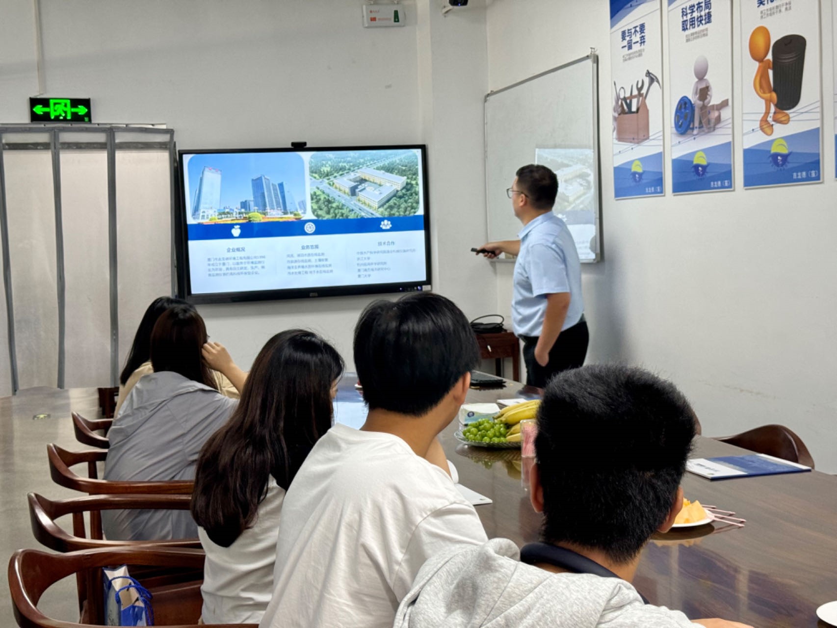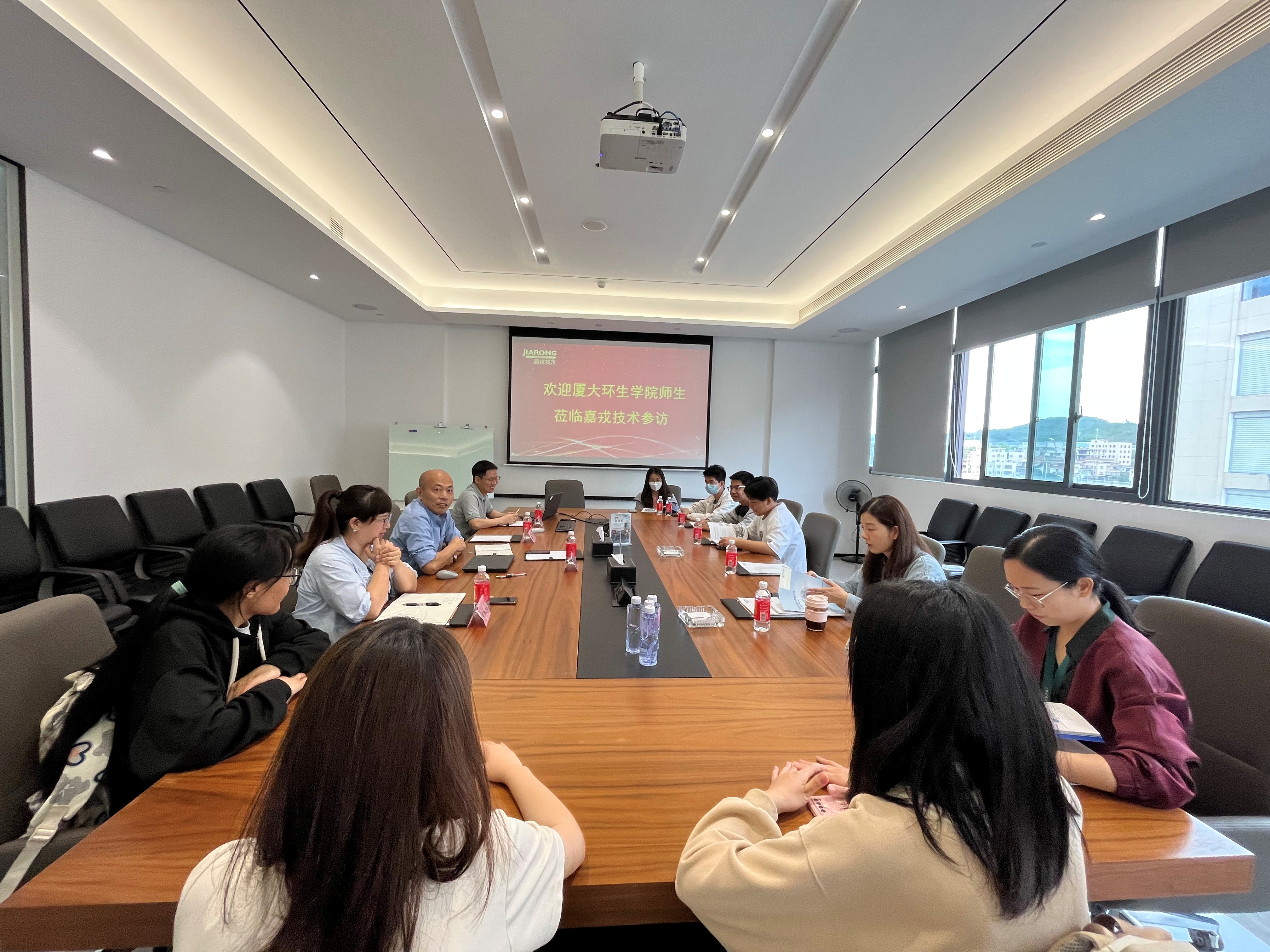 在观摩学习结束后,师生一行同厦门嘉戎技术股份公司举行座谈交流,王锦龙就嘉戎技术业务板块、发展现状和环境生态工程就业发展前景向同学们展开介绍,谢琳燕则是介绍了公司面向环境专业的岗位需求。