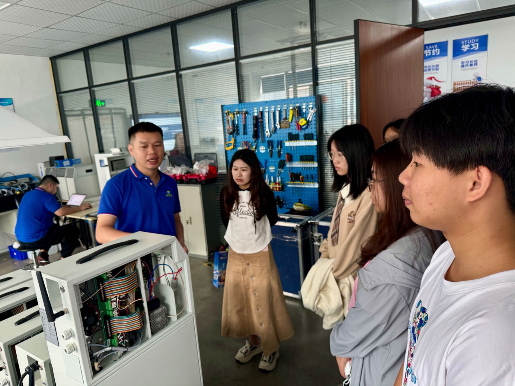 随后,在厦门市吉龙德环境工程有限公司柯宇鸿的带领下,同学们参观了公司的设备生产中心和无人自动化实验室,柯宇鸿也对公司的重点仪器设备作了简单介绍。在座谈会中,柯宇鸿以生态文明建设政策为基础,侧重介绍了福建重点发展的生态环保产业方向以及福建的一些重点环保企业。