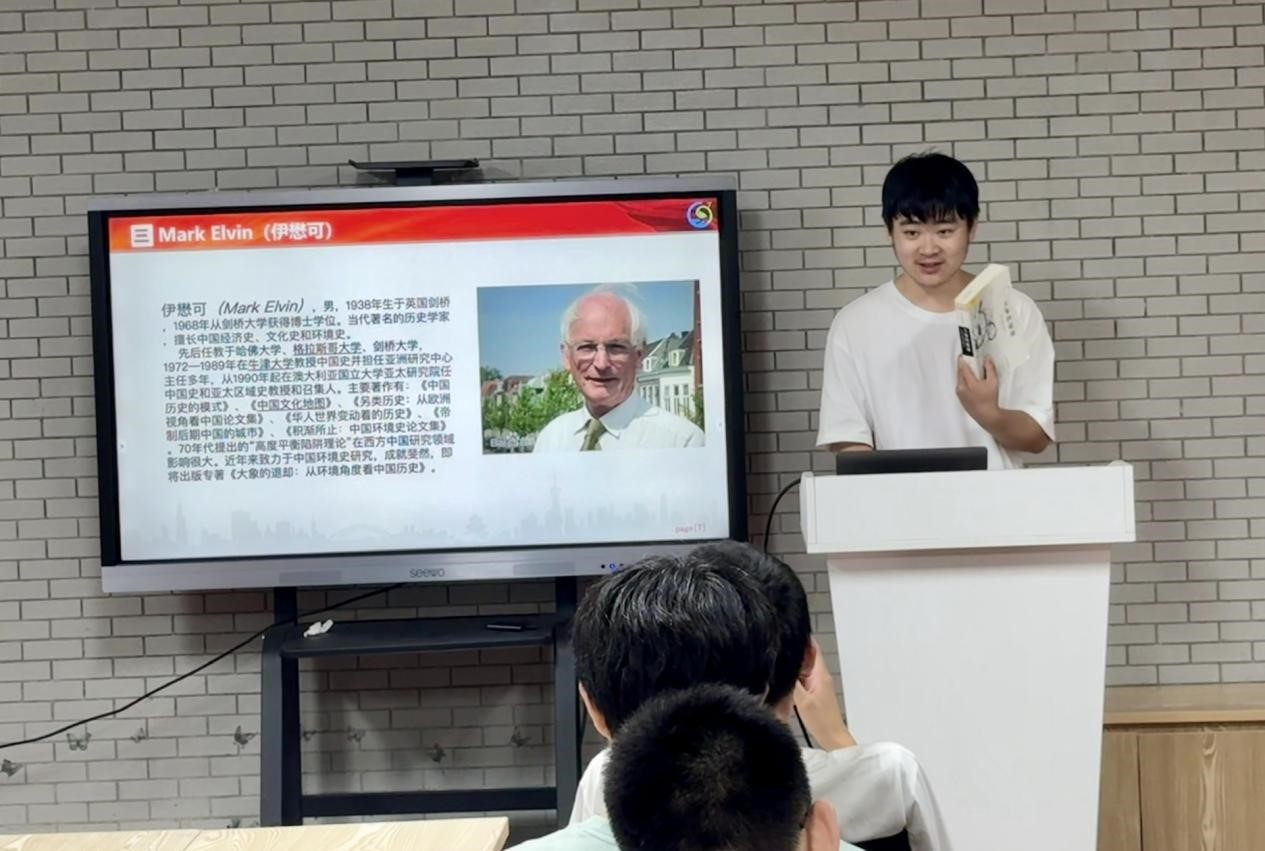 尹海轩则通过《大象的退却》一书,向同学们讲述了一个关于环境变迁的深刻故事。书中以大象的迁徙为线索,折射出中国快速发展对环境带来的冲击,林业资源的衰减与水患的频发等环境问题引人深思。