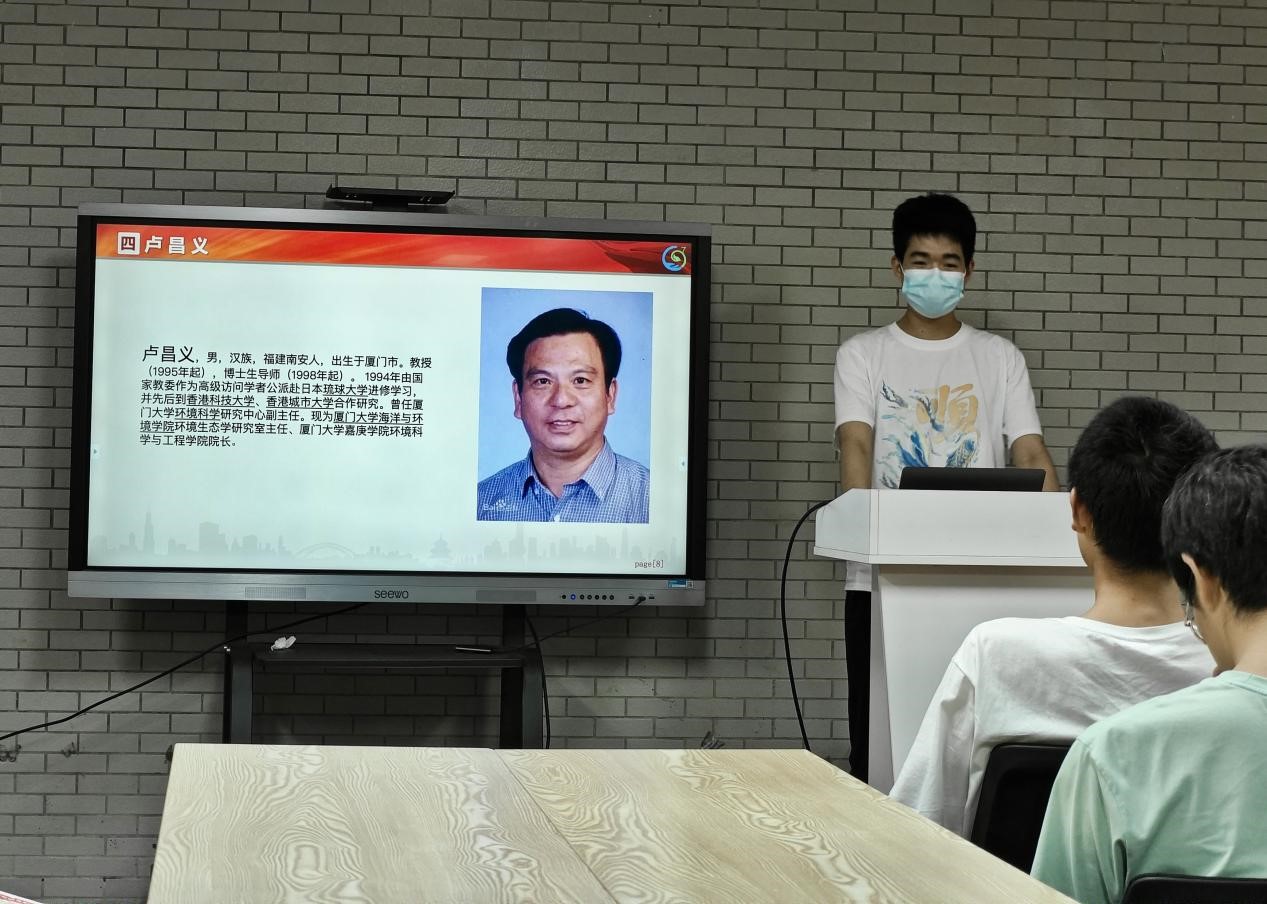 张皓源向同学们介绍了我院卢昌义教授,他不仅在学术上有着深厚的造诣,更是身体力行地投身于厦门红树林的生态保护建设。他所编著的《呼唤绿色新世纪》《环境科学概论》《湿地生态与工程》以及主编的《从筼筜港到筼筜湖》等一系列著作,无不透露出他对环境保护的深切关怀与实际行动。通过这些书籍,我们看到了科学家们的无私奉献和他们对美好未来的殷切期望。