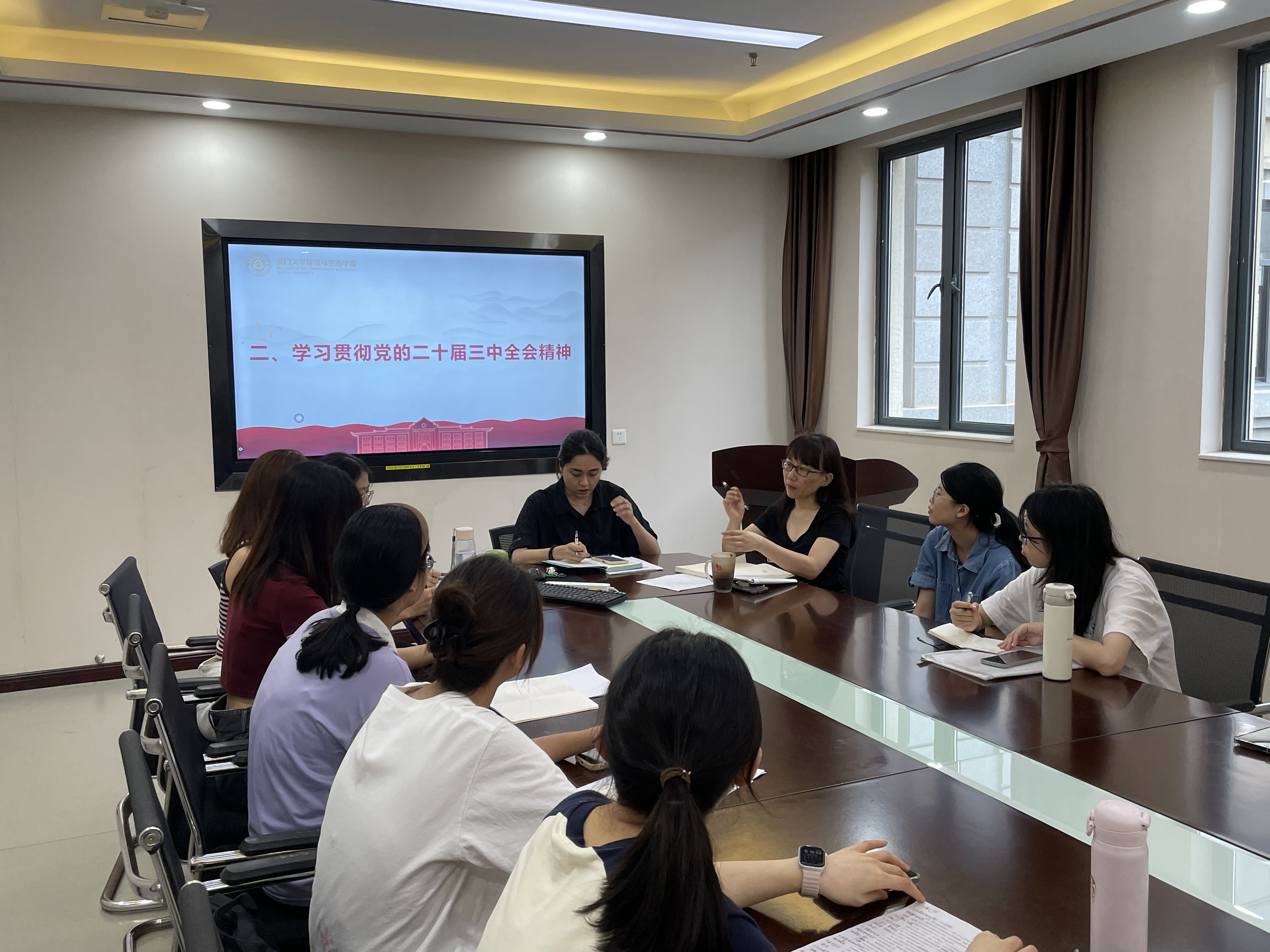 在团委副书记黄怡平的带领下,全体委员深入学习党的二十届三中全会精神,围绕《中共中央关于进一步全面深化改革、推进中国式现代化的决定》和说明开展学习研讨。第十三届研究生团总支书记俞铖红、研究生会执行主席王一帆、学术部负责人李冰菲分享学习心得。