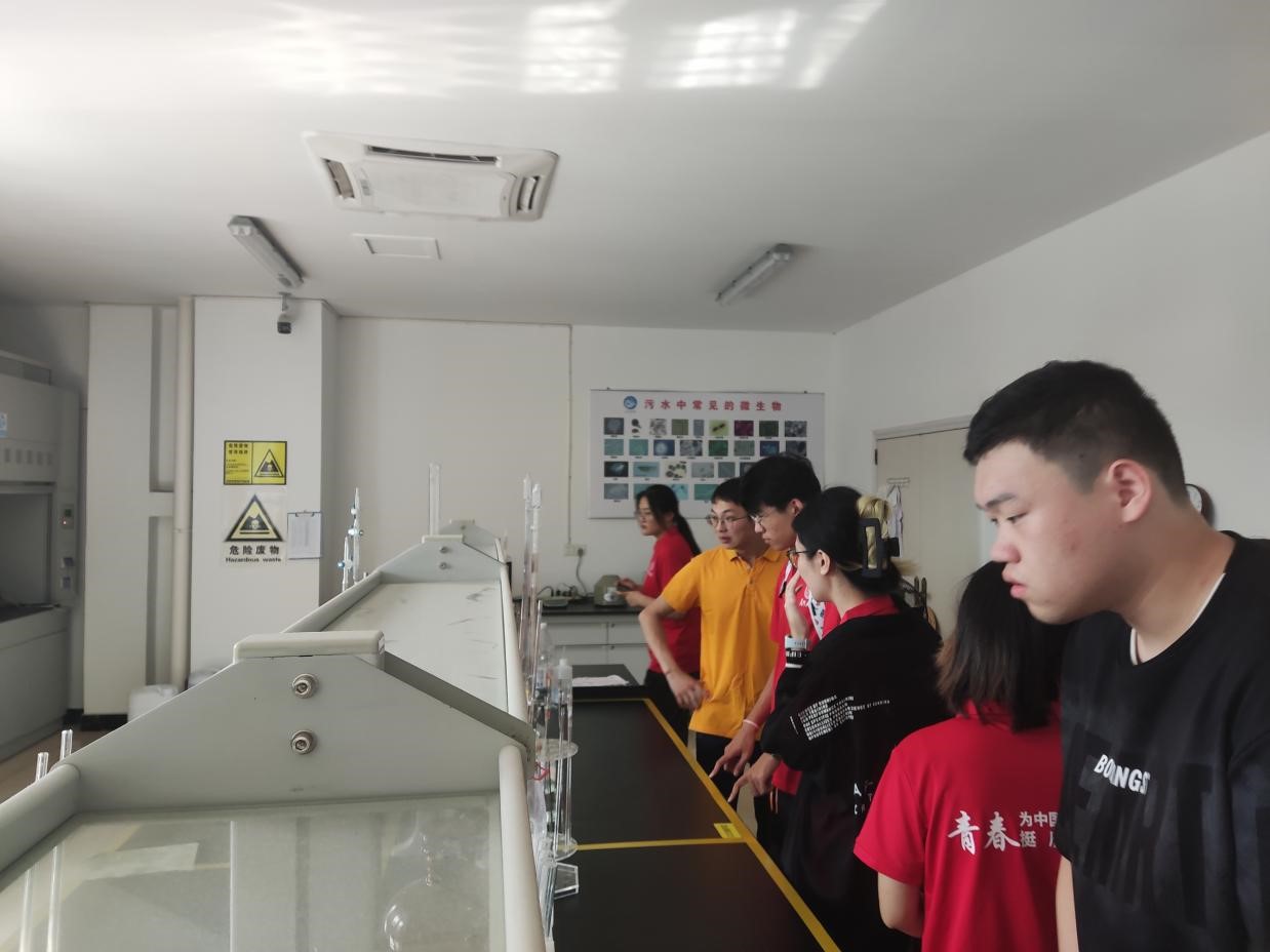 参观污水处理的全过程后,工作人员向实践队介绍了污水处理厂的样品处理室和中央控制系统,其功能是实时监测仪器设备及污水处理状况。同时,该系统具备完善的预警装置,有全自动高度集成化的报警和传感器检测处理前后污水的理化性质,能够及时对于仪器以及污水处理中的问题进行警告以便于快速处理。通过工作人员的介绍,实践队体会到污水处理的严格要求,并对东墩污水处理厂的建设与发展有了更全面的认识,进一步激发了实践队对环保事业的热情和责任感。