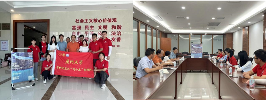 8月7日上午,实践队前往漳州市生态环境局参观,与生态环境局水生态环境科、河长办水质组进行访谈交流。实践队员就漳州市当前水生态环境状况、九龙江河长制建设具体状况、九龙江主要污染源等方面的问题进行提问,生态环境局的工作人员不仅详细解答了同学们的疑问,还主动分享了九龙江治理的最新进展与一系列创新政策。他们指出,漳州市通过实施“五位一体”综合治理模式,已在水生态环境保护方面取得了初步成效,但面对“十四五”规划提出的新要求,治理工作已逐步进入“深水区”,需进一步深化治理措施,提升治理效能。访谈临近尾声时,黄通辉科长对实践队员们寄予了厚望。他鼓励大家不仅要扎实掌握专业知识,更要紧跟时代步伐,深入了解国家关于生态环境保护的政策法规及流域基本情况,将所学知识与实践紧密结合,为环保事业贡献自己的青春力量。