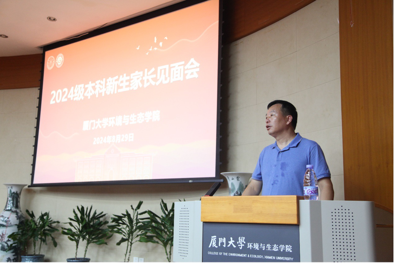 蔡虎堂感谢大家百忙中抽出时间来参加本次见面会,并代表学院对各位家长的到来表示衷心的感谢,对孩子们考到厦门大学环境生态学院表示热烈的祝贺!同时他介绍了本次家长会目的与意义,希望家长们到时积极发言。