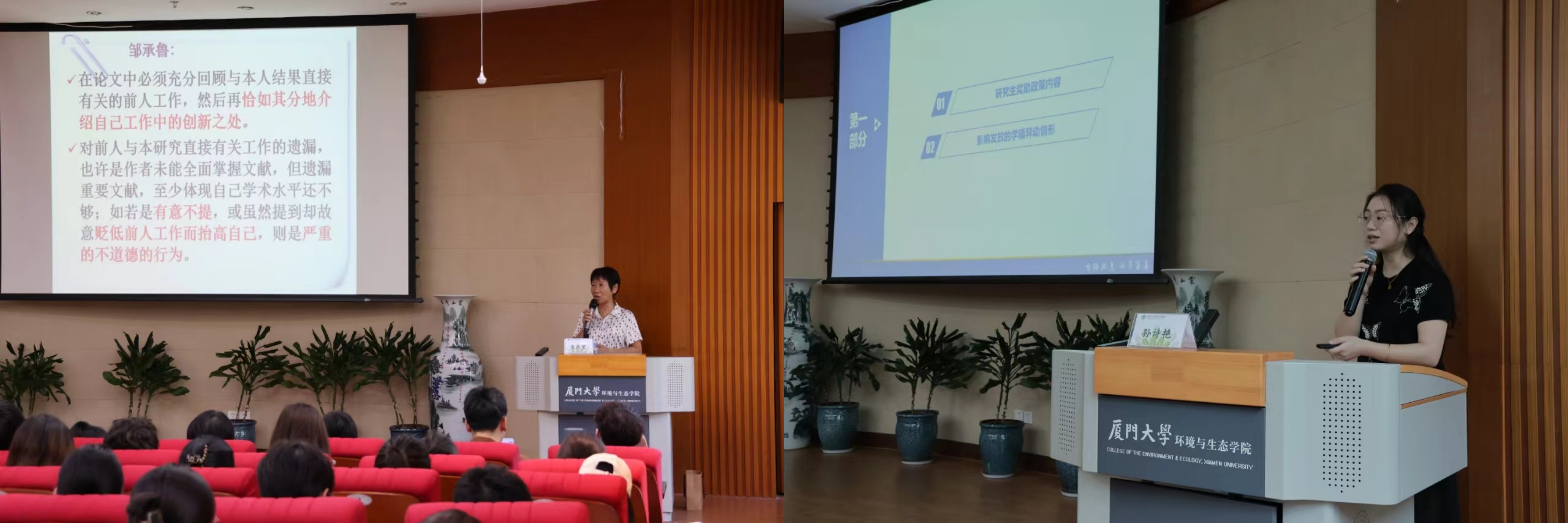 言行有尺,铸就诚信基石。30日下午,学院关工委常务副主任袁东星教授以《科学道德和学术诚信——致本院研究生》为题,为新生们上了一堂生动的学术诚信教育课。她以教育部关于学术道德的法令法规开篇,用一个个鲜活的案例为引,深入剖析了学术不端行为的危害性,让新生们深刻认识到在科研道路上,诚信不仅是个人的品质体现,更是科学精神的内在要求,鼓励大家要积极做优良学术道德的践行者、良好学术规范的维护者。31日上午,学校学生工作处管理科孙诗艳老师为新生详细介绍了研究生奖助学金政策及学生违纪处分制度,围绕《厦门大学学生违纪处分规定(2024年修订)》的重点条款和常见情形,结合真实的案例进行解析,帮助新生牢固树立纪律意识和法治观念,她还重点强调了学校对于学生违纪行为的零容忍。