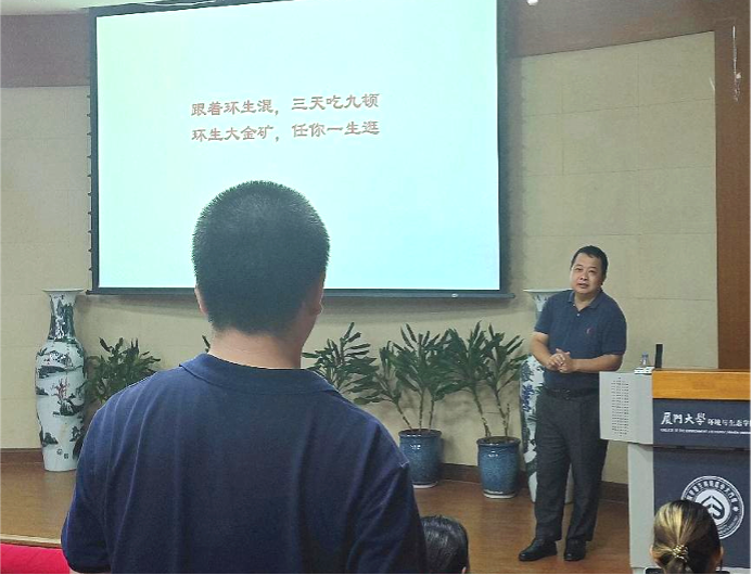 讲座伊始,黄晓佳老师向同学们简单介绍大创起源,并以“为什么要参加大创”这一问题引发同学们的思考。一番热烈的交流后,他详尽地解释了参加大创的诸多益处,点燃了同学们了解和参加大创的热情。