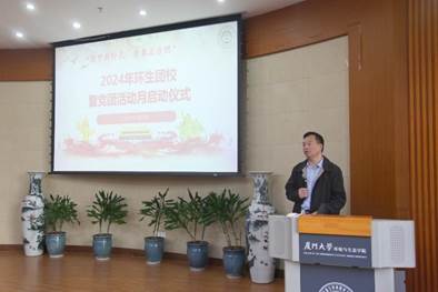 11月26日中午,我院2024年环生团校暨党团活动月启动仪式于金泉楼B103顺利召开。本次党团活动月的主题为“筑梦新时代,青春正当燃”。学院党委副书记蔡虎堂、妇委会主任陈鹭真教授、团委书记郑淑真、本研团支书和2024级全体新生参与了本次活动。活动由本科生团总支书记张皓源同学主持。