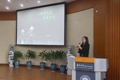 悠扬的校歌合唱后,陈鹭真为大家带来了党团活动月的第一场专题讲座——“以科学之名行走自然”。讲座中陈鹭真老师简要阐述了生态学的研究内容与其发展和人类之间的关系。并借自身经历,为大家介绍了自己科研历程中遇到的种种趣事与发人深省的科学探索过程。陈鹭真希望大家能重视生态学发展对于人类的重要意义,感悟人与自然和谐共生的生态魅力,养成善于发现、认真严谨、实事求是的科研态度,培育环生人有担当、有作为的责任意识,让自身科研能为实现美丽中国的美好愿景提供一份力量。