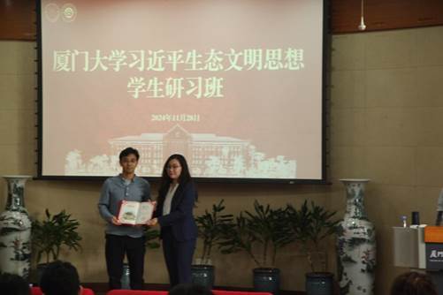 为引导学员系统学习习近平生态文明思想,增强对生态文明建设的认同和责任感,认识到生态文明建设对于实现可持续发展和人类福祉的重要性,11月28日中午,我院于金泉楼B103开展厦门大学习近平生态文明思想学生研习班第一次理论学习讲座。院党委副书记王旖旎、辅导员肖莉君、习近平生态文明思想学生研习班全体学员及2024级本科新生参与了此次学习活动。活动由院团委书记郑淑真主持。
