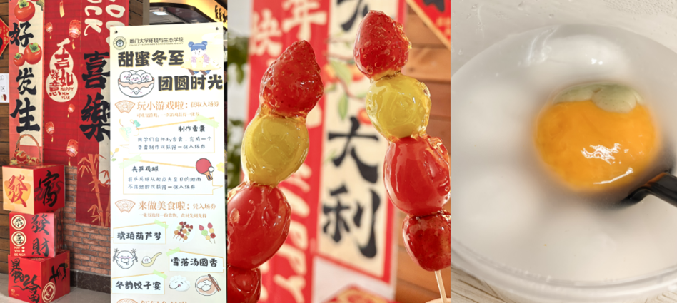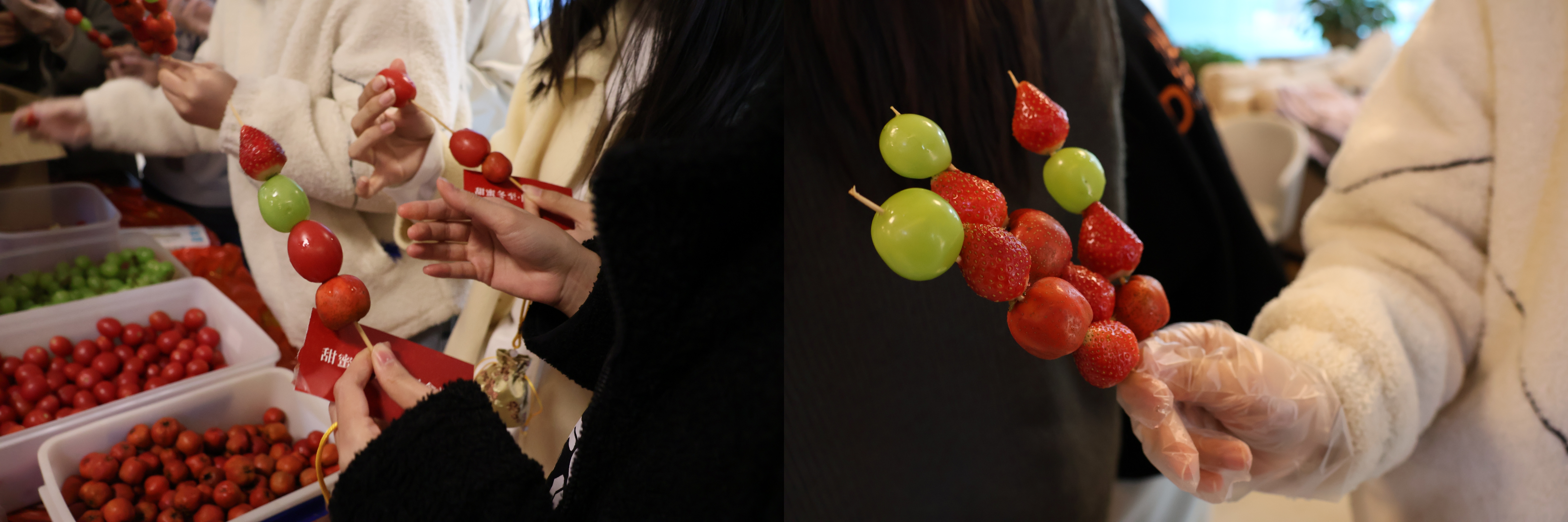 美食盛宴上,学院为大家准备了汤圆、水饺和琥珀糖葫芦三种美食。糖葫芦的甜蜜、饺子的鲜美、汤圆的温暖,每一口都充满了冬日的温暖气息。师生们聚在一起,品尝美食,分享喜悦,纷纷用照片记录下这一温馨而欢乐的场景。