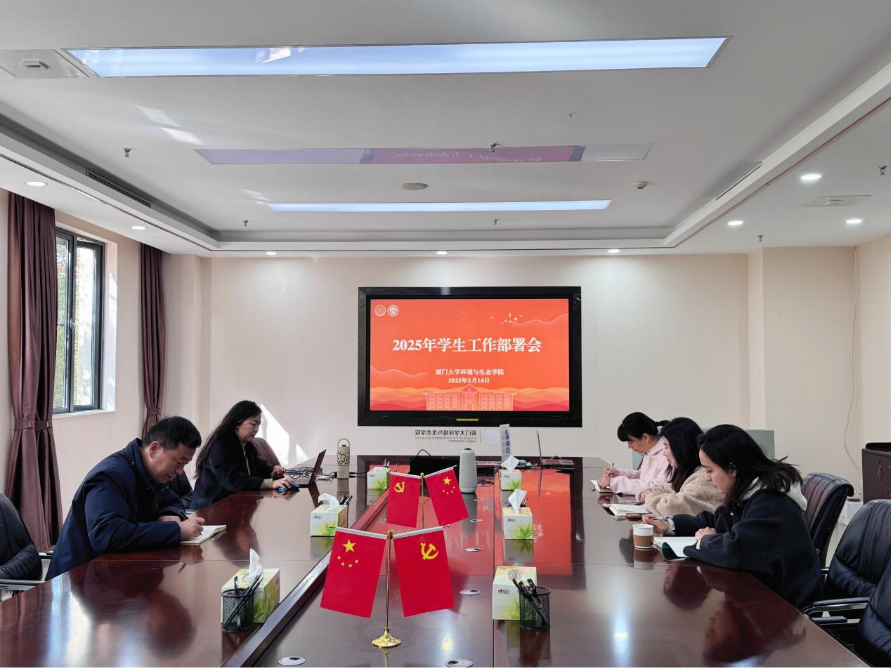 为扎实做好2025年春季学生开学工作,2月14日上午,我院在金泉楼A226会议室召开2025年学生工作部署会,对新一年的各项工作进行交流研讨和谋划部署。学院党委副书记蔡虎堂、王旖旎以及全体辅导员参加会议。会议由蔡虎堂主持。