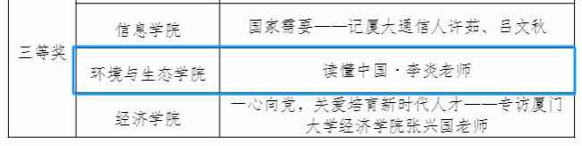 近日,厦门大学公布2024年“读懂中国”活动获奖名单,我院斩获多项荣誉。其中,征文作品《智慧交融,学术人生——走近欧阳通老师》《心中的灯塔——走近李炎老师》均荣获征文类三等奖,微视频《读懂中国•李炎老师》荣获微视频类三等奖,充分展现了学院师生在传承与创新中的卓越风采。