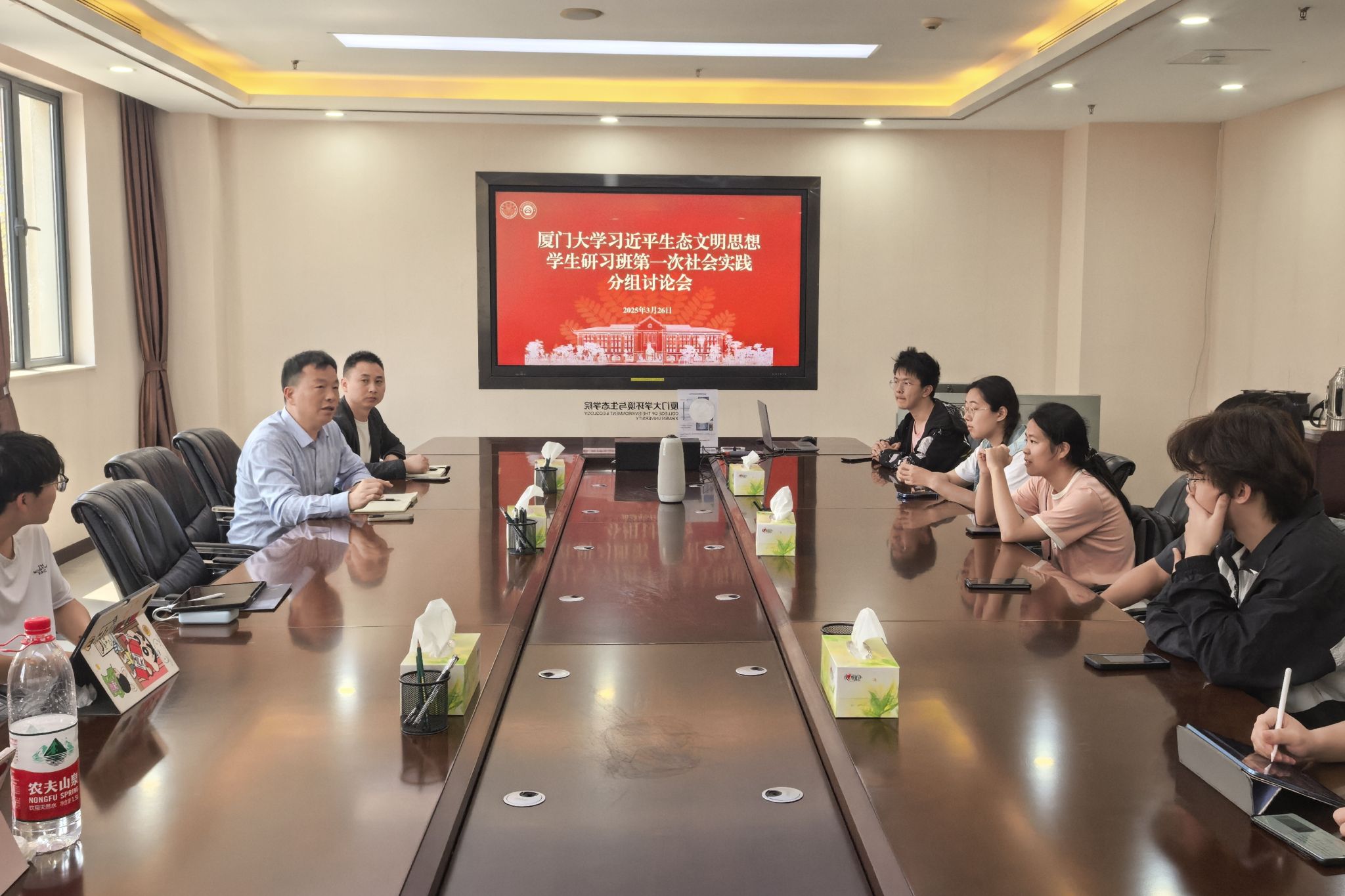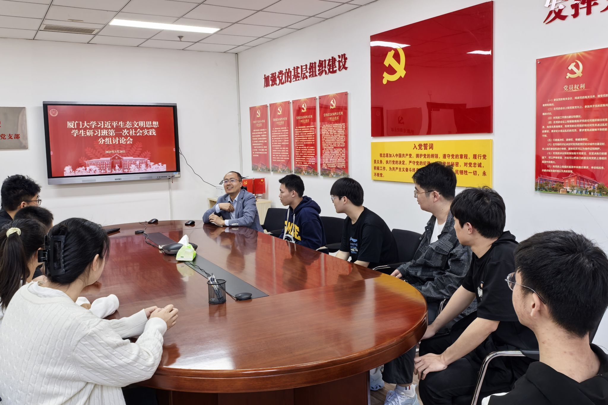 为深入学习贯彻习近平生态文明思想,推动理论学习与社会实践有机结合,进一步提升研习班社会实践育人成效,3月26日中午,厦门大学习近平生态文明思想学生研习班第一次社会实践分组讨论会在环境生态学院和能源学院同步举行。环境与生态学院党委副书记蔡虎堂、团委书记曹京柱,能源学院团委书记于正伟出席会议。