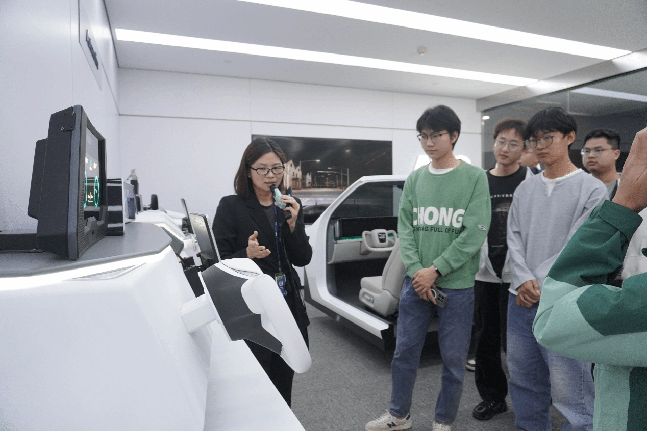 步入友达企业展厅,林丽松向师生们逐一展示了前沿显示技术的魅力:从4K/8K超高清电视屏,到压感触控技术精准还原真实笔触的21.5寸专业手绘屏;从防蓝光的电竞曲面屏与超宽带鱼屏,到高度整合核心显示技术及感测元件打造的“智能座舱”,为驾驶与乘客提供舒适安全的交互体验。每一项技术成果都彰显着友达在显示领域的创新实力,以及对未来科技生活的深刻洞察。